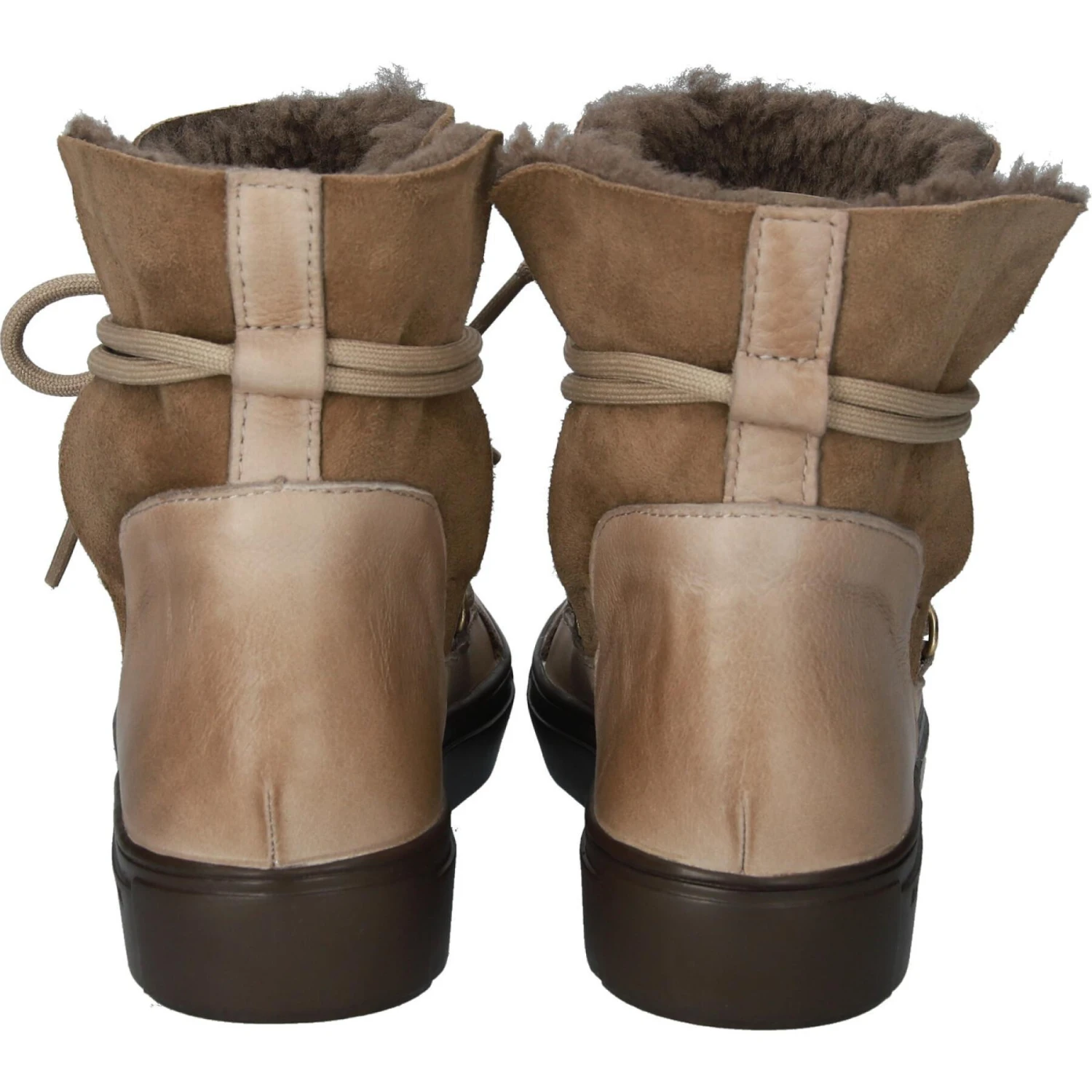 Deze sneeuwlaars is niet alleen een heerlijk warme winterlaars, maar ook helemaal trendy voor het winterseizoen. De buitenkant van de laars is gemaakt van zacht nubuck leer en glad leer, met ronde veters. De laars is gevoerd met schapenvacht, waardoor hij comfortabel en warm is voor de wintermaanden. Combineer de laars met een jeans voor een coole look!