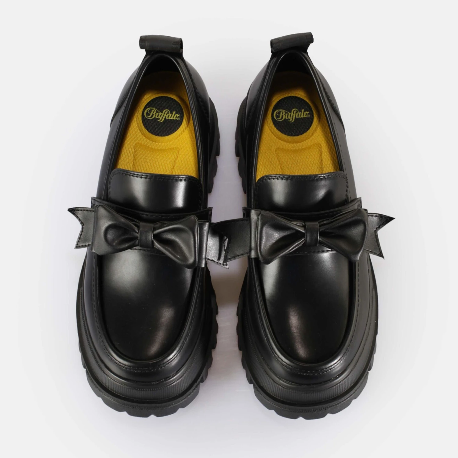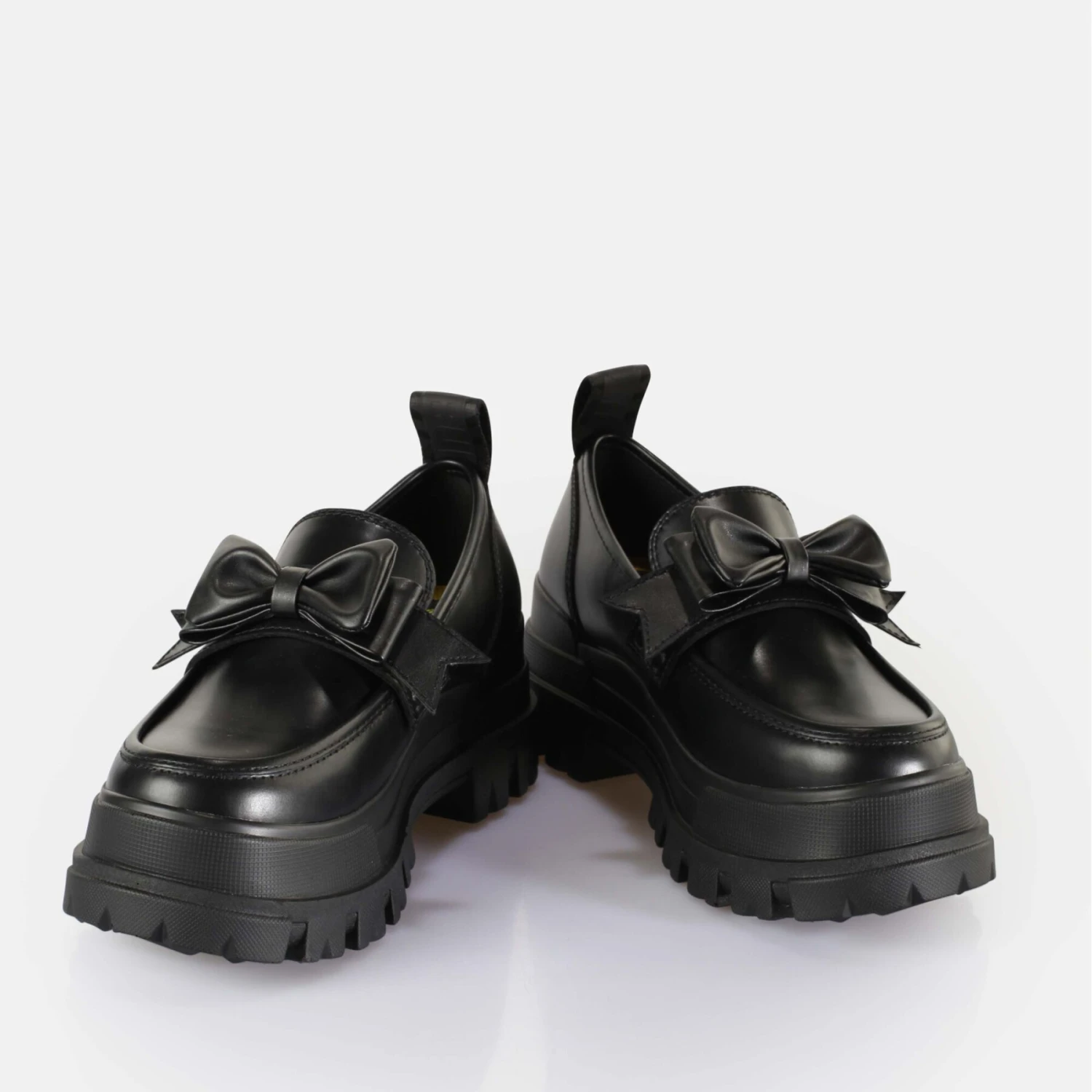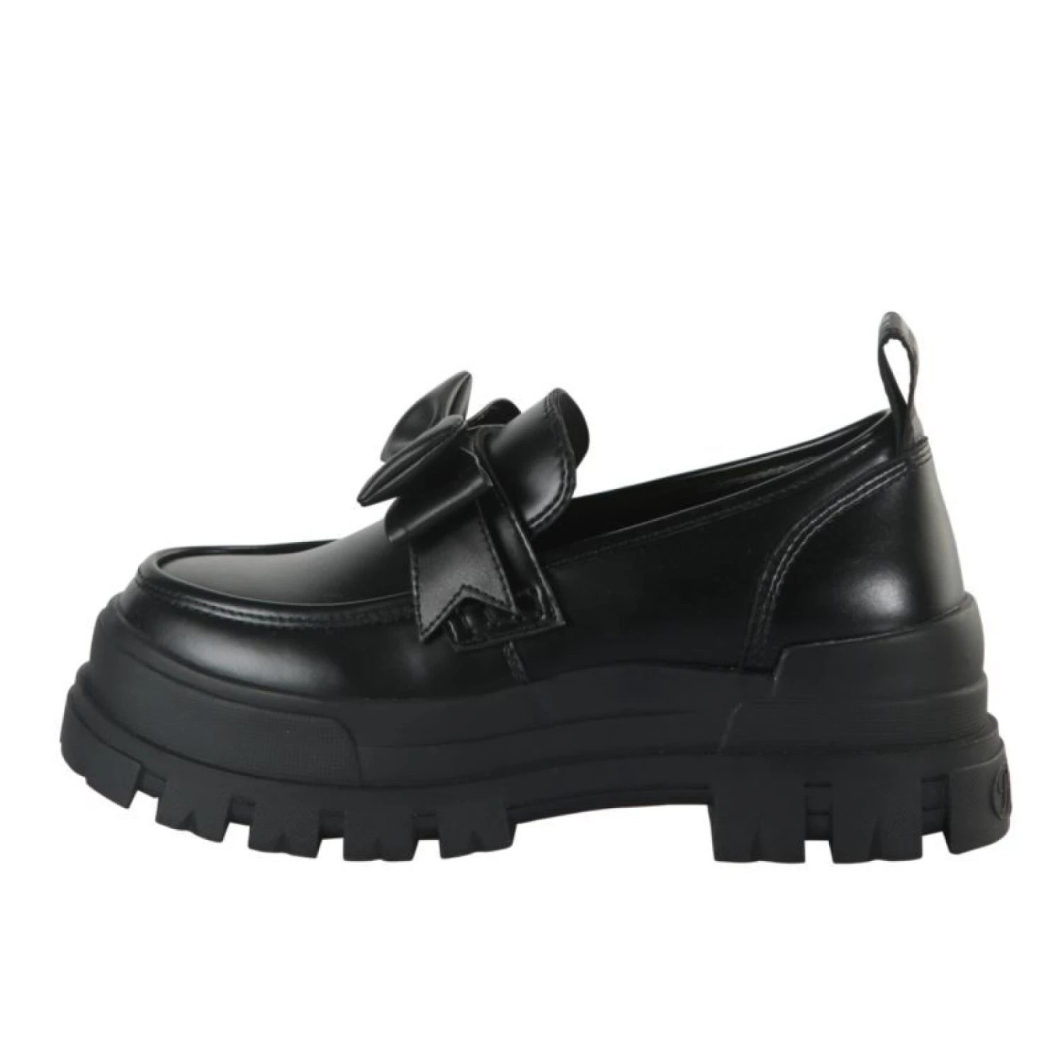 Met de Aspha Loafer Bow loop je voorop in de modewereld. Het schattige ontwerp in diepzwart met een mooie strik is een echte blikvanger. De sleehakzool van deze vegan lage schoenen geeft ze een look ultra-vertakte look. De uitneembare memory foam binnenzool zorgt voor een comfortabele demping. Draag deze elegante lage schoenen met losse, casual jeans.