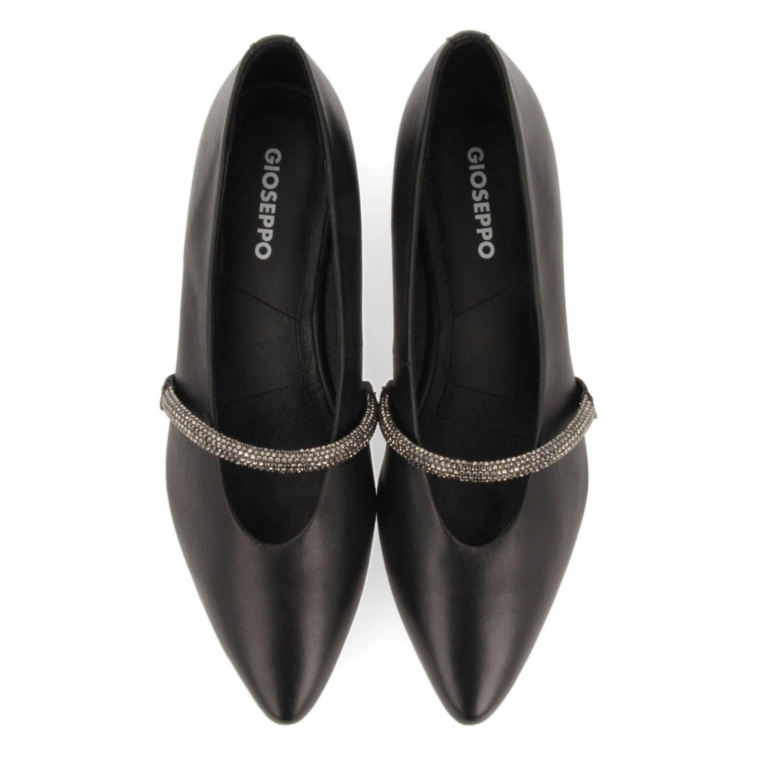 Op zoek naar schoenen die overal bij passen? Zwart leren ballerina’s met spitse neus en strasband. Zwarte hakken met glanzende afwerking. Bovenwerk, binnenzool en voering van leer dat is geproduceerd met behulp van een duurzamer looiproces dat voldoet aan de normen van Leather Working Group. Sterk gepolsterde latex binnenzool voor extra comfort. Flexibele zolen. Mis de nieuwe collectie ballerina’s van Gioseppo Woman FW23 niet.