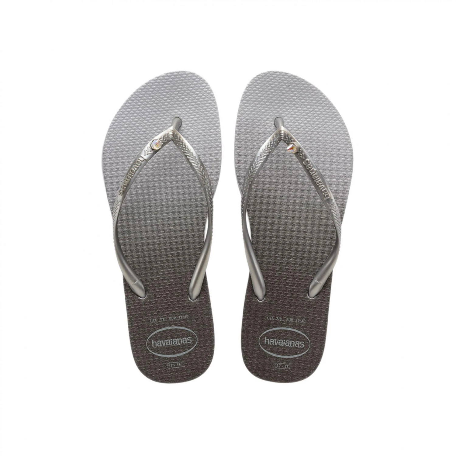 De Havaianas Slim Prism is ultra futuristisch! Naast het schitterende metallic effect op de zool, is het voorzien van een Swarovski-kristal in de vorm van een spike. Ideaal om een moderne toets te geven aan uw meest glamoureuze looks.