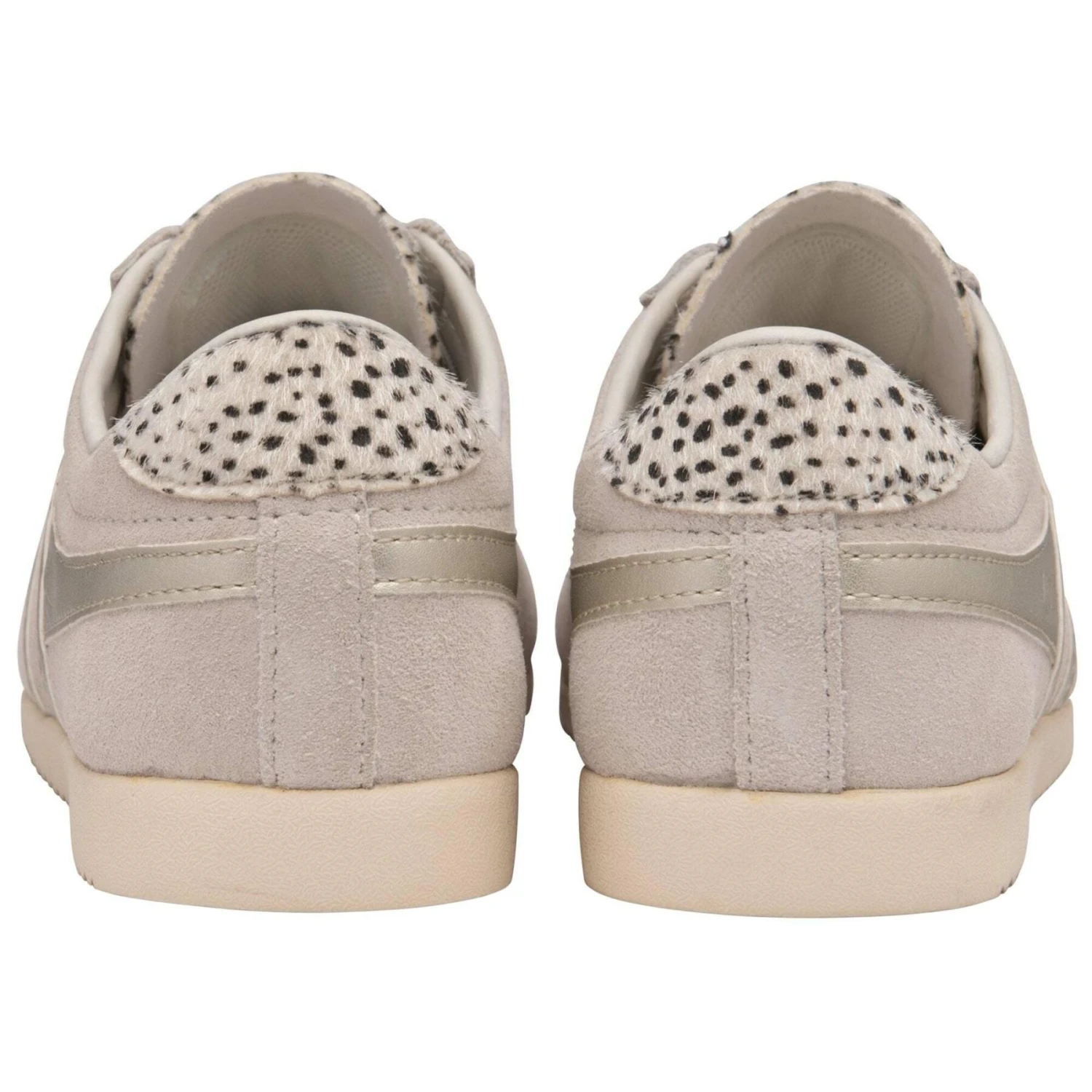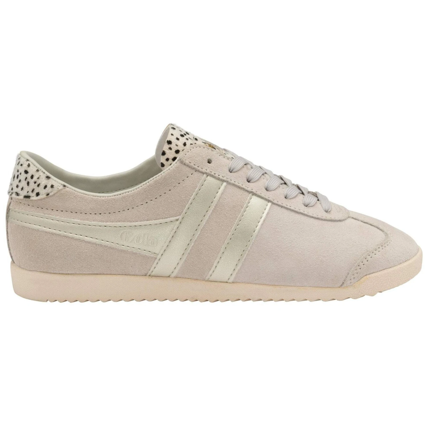 De super stijlvolle Gola Bullet is dit seizoen opgefrist in de vorm van de Bullet Savanna. Deze veelzijdige garderobe-aanwinst heeft een tong- en hiellipje van imitatiecheeta’s en een metallic Gola wingflash-bies op een bovenwerk van off-white suède. De super stijlvolle en veelzijdige Gola Bullet Savanna damesschoen is een moeiteloze alledaagse essential met een vleugje dierlijkheid. Gebroken wit suède bovendeel Afgewerkt met imitatiebeesten Vetersluitingstrainer Damesmodel Gebaseerd op de originele Gola Bullet uit 1976.