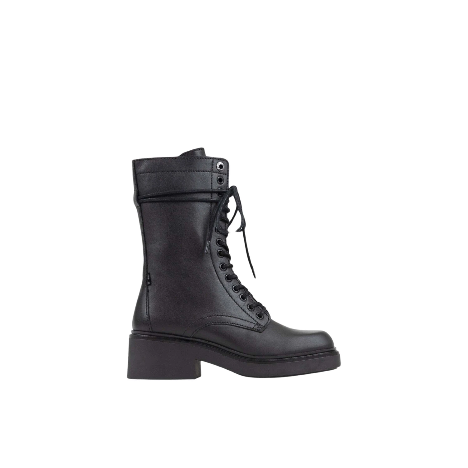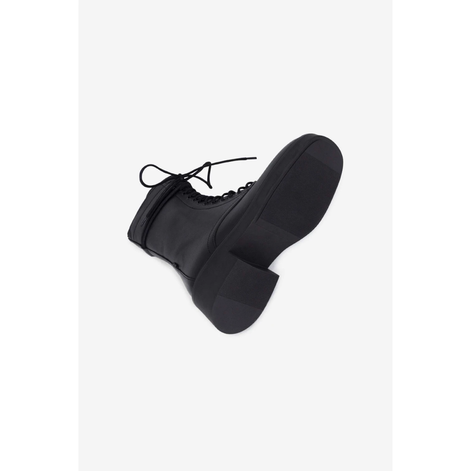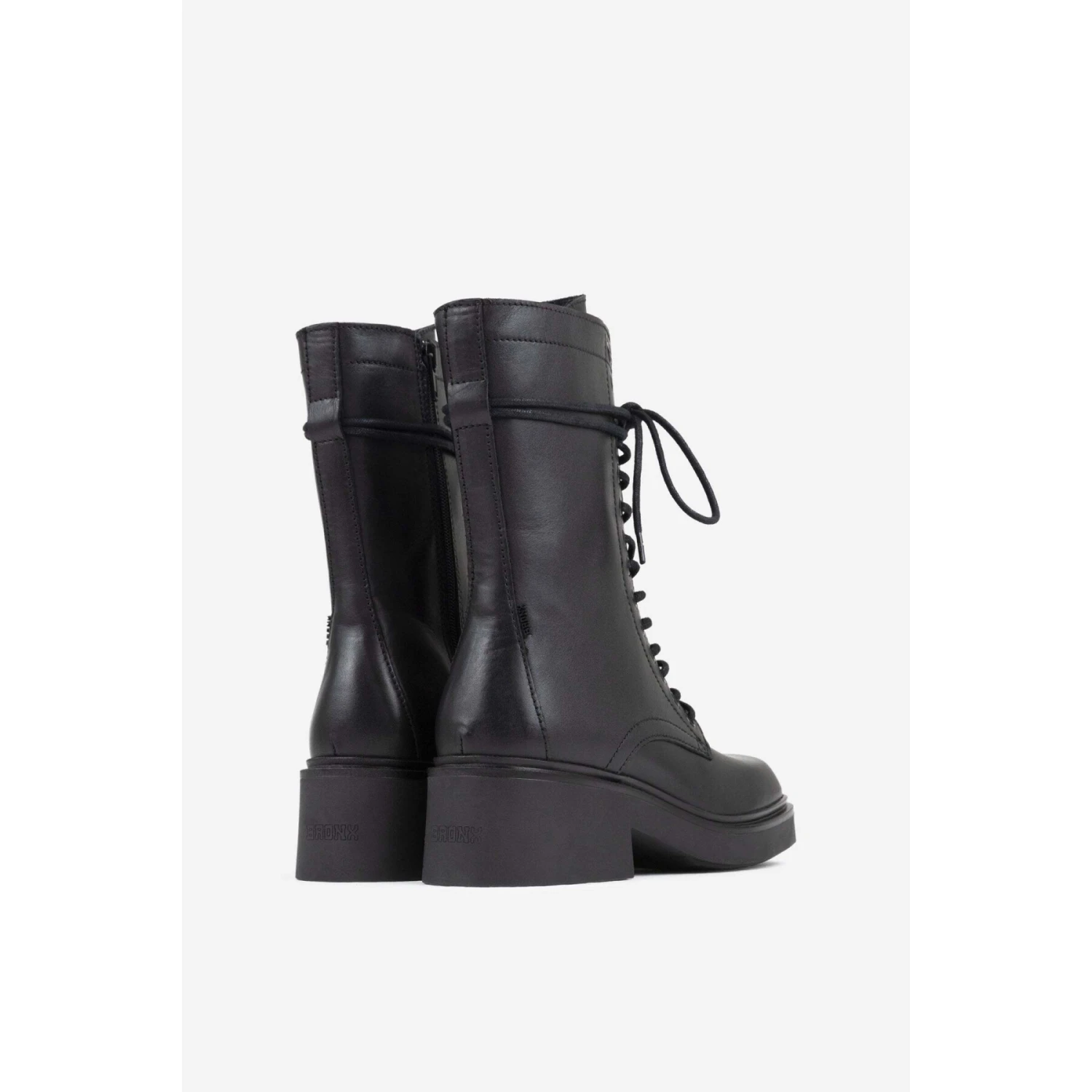 Het rijke tweekleurige geborstelde leer ondergaat een proces in drie fasen: van een gekleurde basis wordt er een zwarte laag overheen gelegd en met de hand afgewerkt om een tweekleurig effect van hoge kwaliteit te creëren. Het hybride ontwerp van deze laars Daff-ey is uniek in de modewereld.