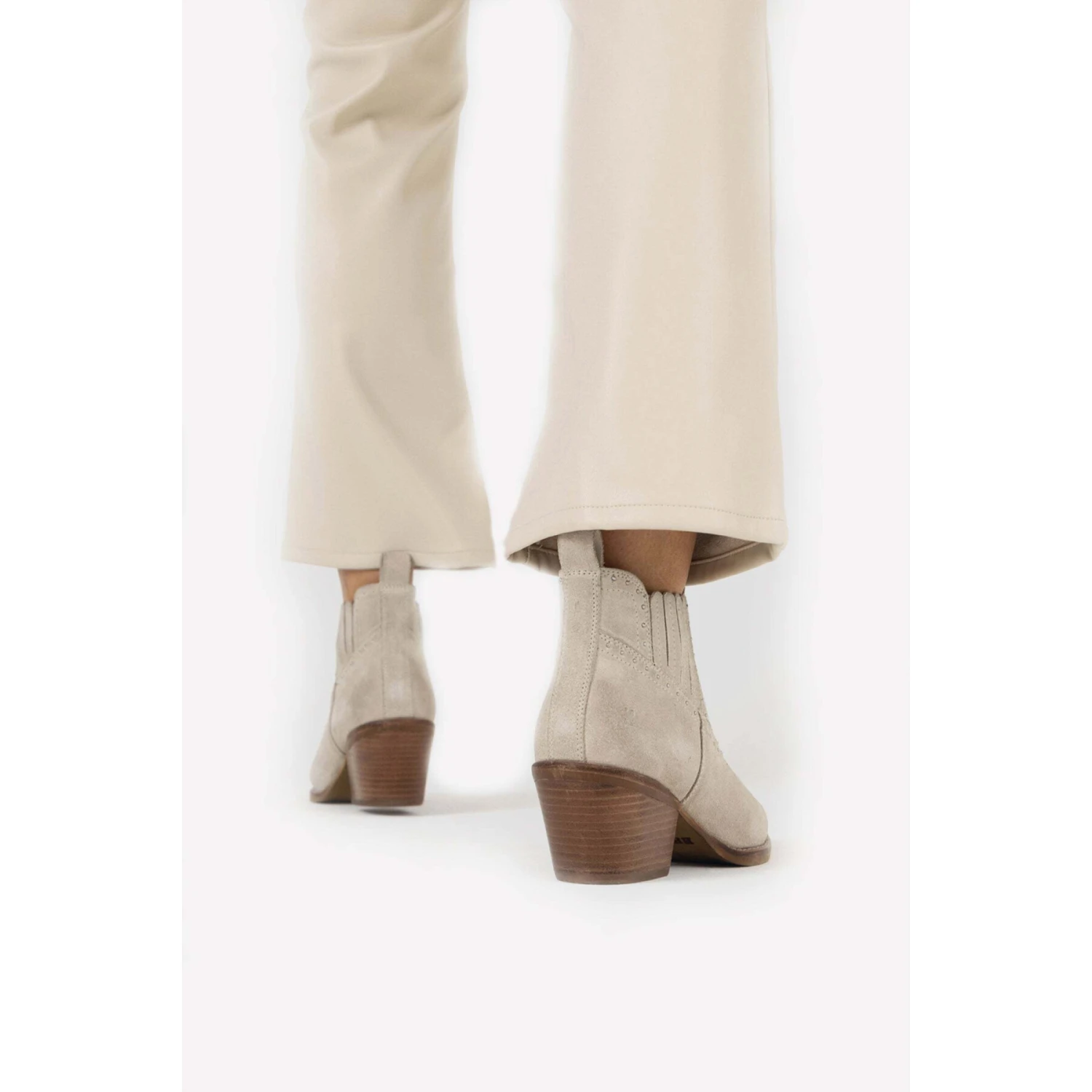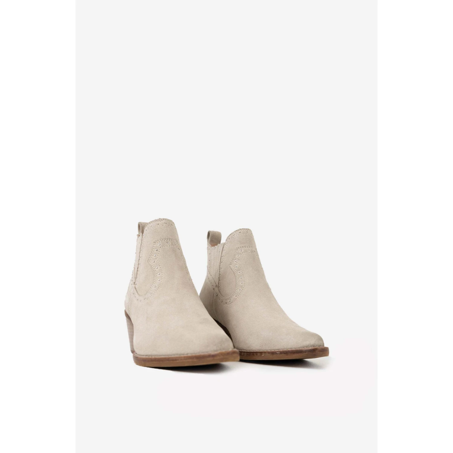 Je kunt nooit genoeg originele laarzen hebben! Een stoere enkellaars met een western twist. Dit is onze Jukeson. Deze zwarte laars heeft een schachthoogte van 10 cm en een hakhoogte van 6 cm. De schoen heeft een elastische sluiting en een spitse neus. Ga op jacht naar je innerlijke cowgirl! Duurzaamheid Een schoen bestaat uit drie delen: het bovenwerk, de voering en de zool. Als een van deze onderdelen 50% of meer duurzaam is, krijgt de schoen ons label “duurzamer”. De schoen krijgt het duurzamere label door het gebruik van duurzamer schapenleer (gecertificeerd door de Leather Working Group). Lees hier over ons stappenplan naar een zero footprint.Sluiting: ElastiekCollectie: SS’22WESTERKleur: ZandHoogte hak: 6 cmMateriaal zool: LeerMemaakt in: IndiaBinnenmateriaal: LeerBuitenmateriaal: SuèdeDuurzaam: JaZoolmateriaal: RubberVerwisselbare zool: JaHoogte schacht: 10 cm