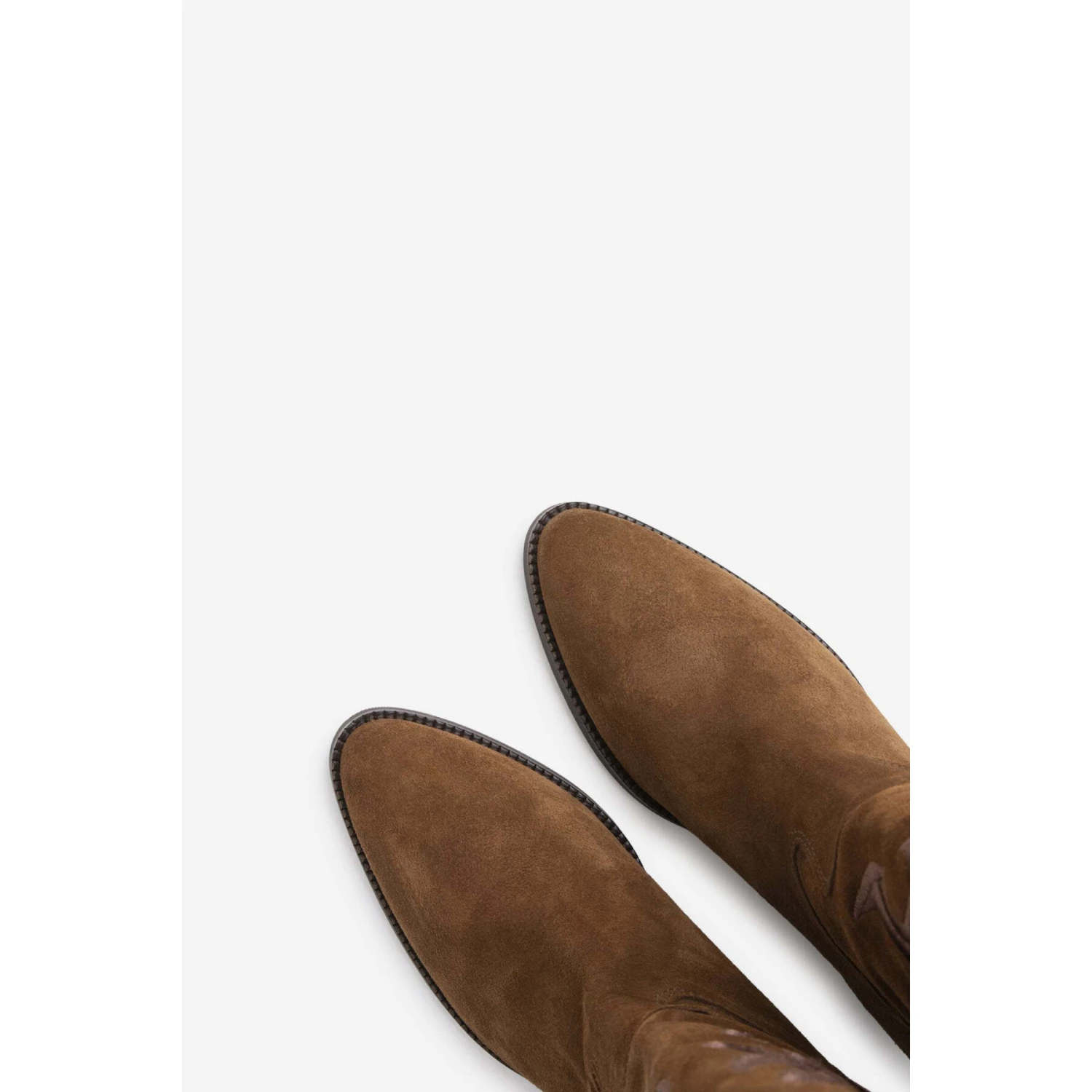 Zeg hallo tegen Ta-lya: de ultieme fusion voor western charme en vrouwelijke allure. Met deze veelzijdige laarzen ben je het hele jaar door in stijl. Het metallic 3D-borduursel voegt een onweerstaanbare touch toe waarmee ze zich onderscheiden. Ze zijn gemaakt van hoogwaardig suède met een tweekleurig ruitereffect, hebben een lage hak en een amandelvormige teen voor extra comfort en elegantie. Ze zijn volledig gevoerd met eersteklas geitenleer en garanderen behaaglijke warmte bij koud weer. Met het authentieke DNA van BRONX, de gemerkte hak, de gestikte welt en de hak bedekt met Italiaans fineer, zijn deze laarzen een opmerkelijke keuze.