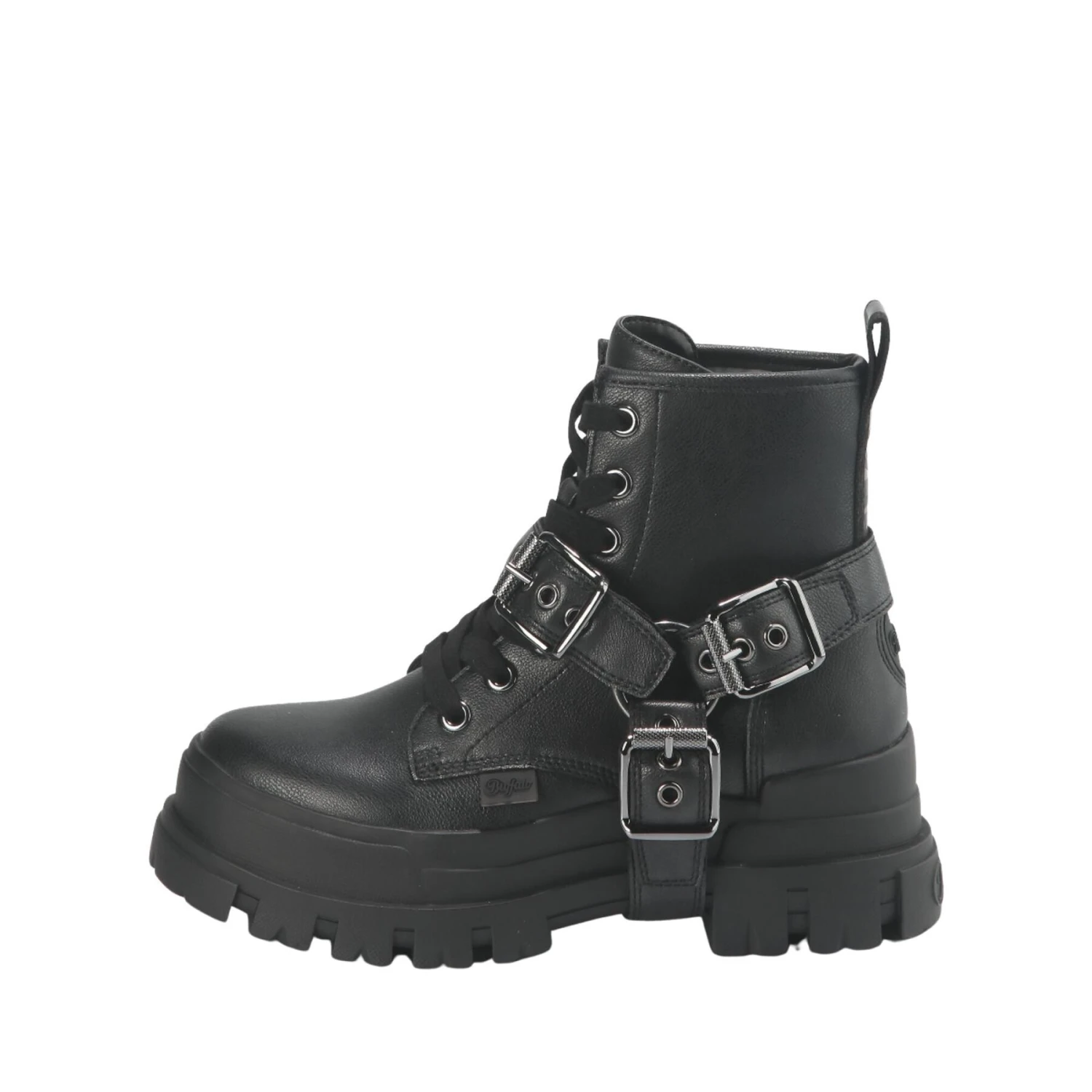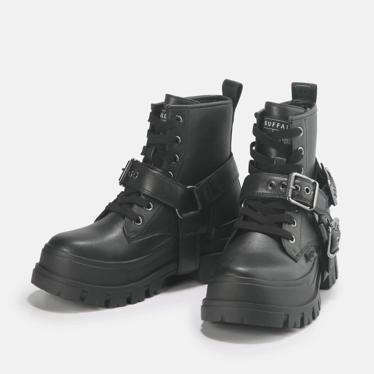Wees klaar om elk obstakel aan te gaan: met de Aspha Biker boots verklaar je de oorlog aan vliegtuigstijlen. Deze gevechtslaarzen in militaire stijl hebben gespen op look en zullen al je rockeroutfits naar de zevende hemel katapulteren. Draag ze met een ripped jeans of een bloemetjesjurk voor een eigenzinnig randje. Hoe dan ook, je bent in topvorm.