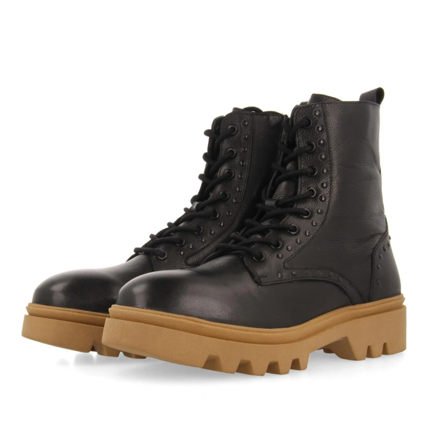 Een must-have voor dit seizoen. Wacht niet te lang! Veterschoenen met zilveren studs. Zolen van zwart en karamel leer. LWG leren binnenzolen en bovenbanden met latex coating. Voering van gerecycled polyester. Natuurvezel inlegzolen en TPR kurkzolen.