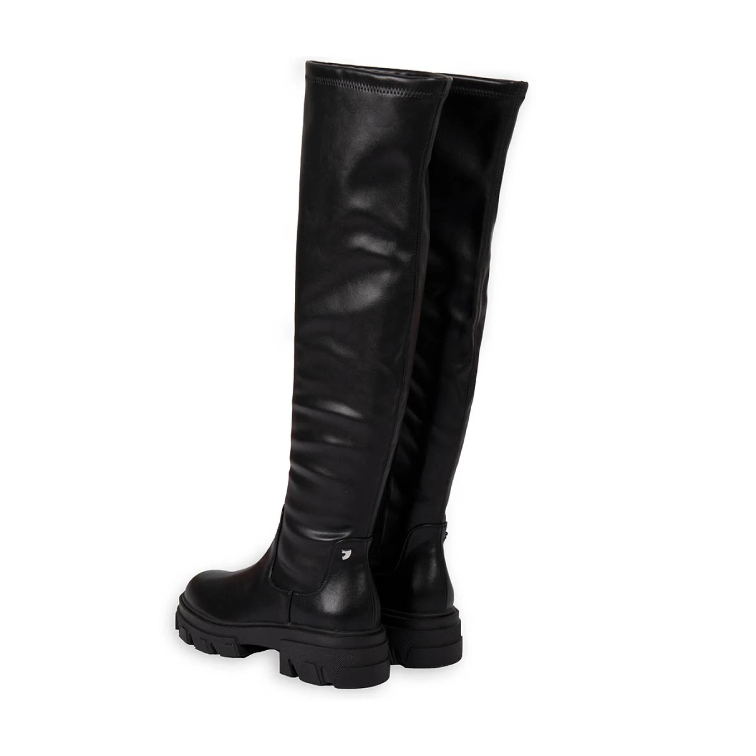 Ontdek alles wat nieuw is in de herfst-wintercollectie 2022 van Gioseppo Woman! Waar wacht je nog op om jezelf te verwennen met de nieuwste modetrends van dit seizoen? Zwarte dijhoge laarzen met zwart elastiek en spoorzool. Ademende leren zool met comfortabele vulling en ademende polyester voering. TPR rubberen zool.