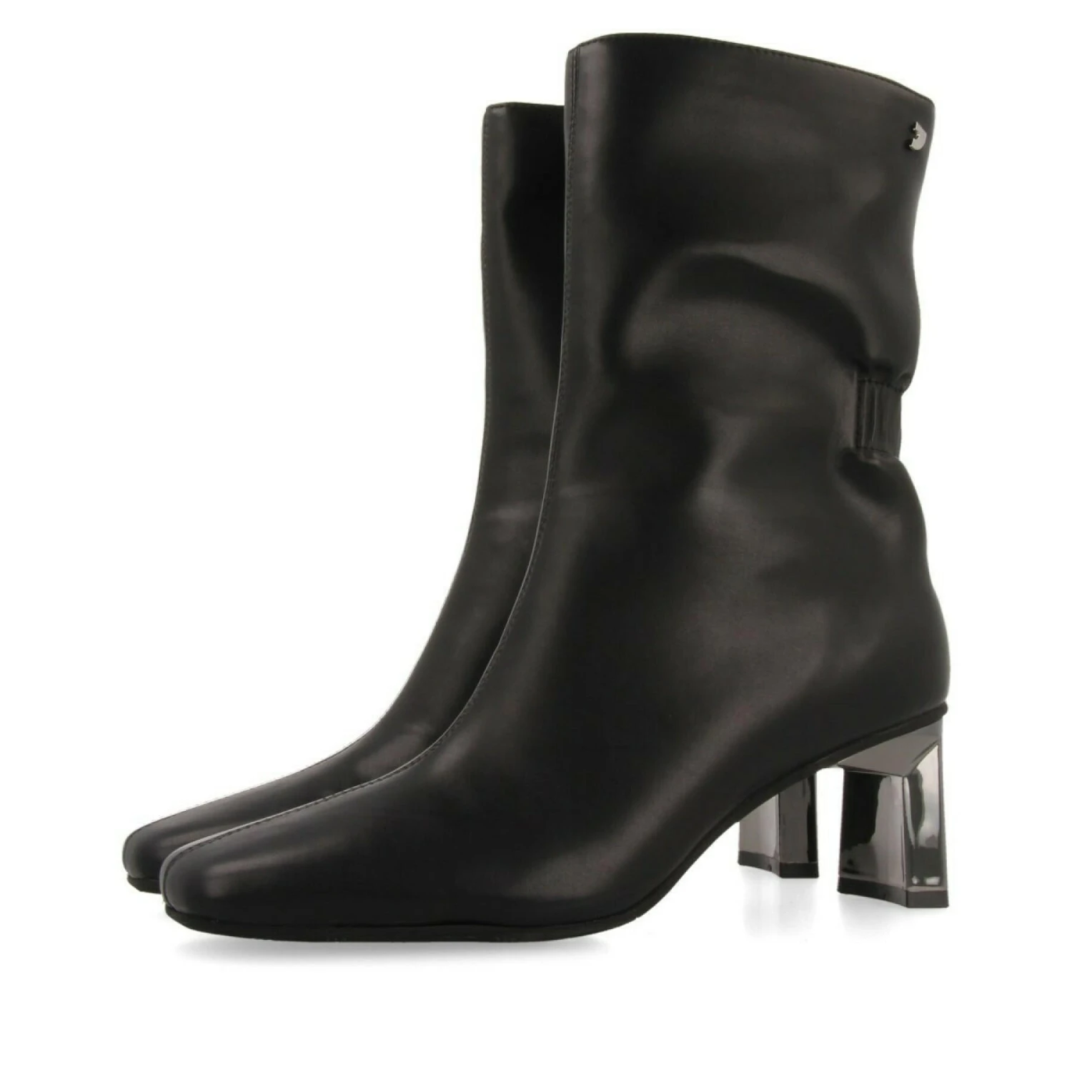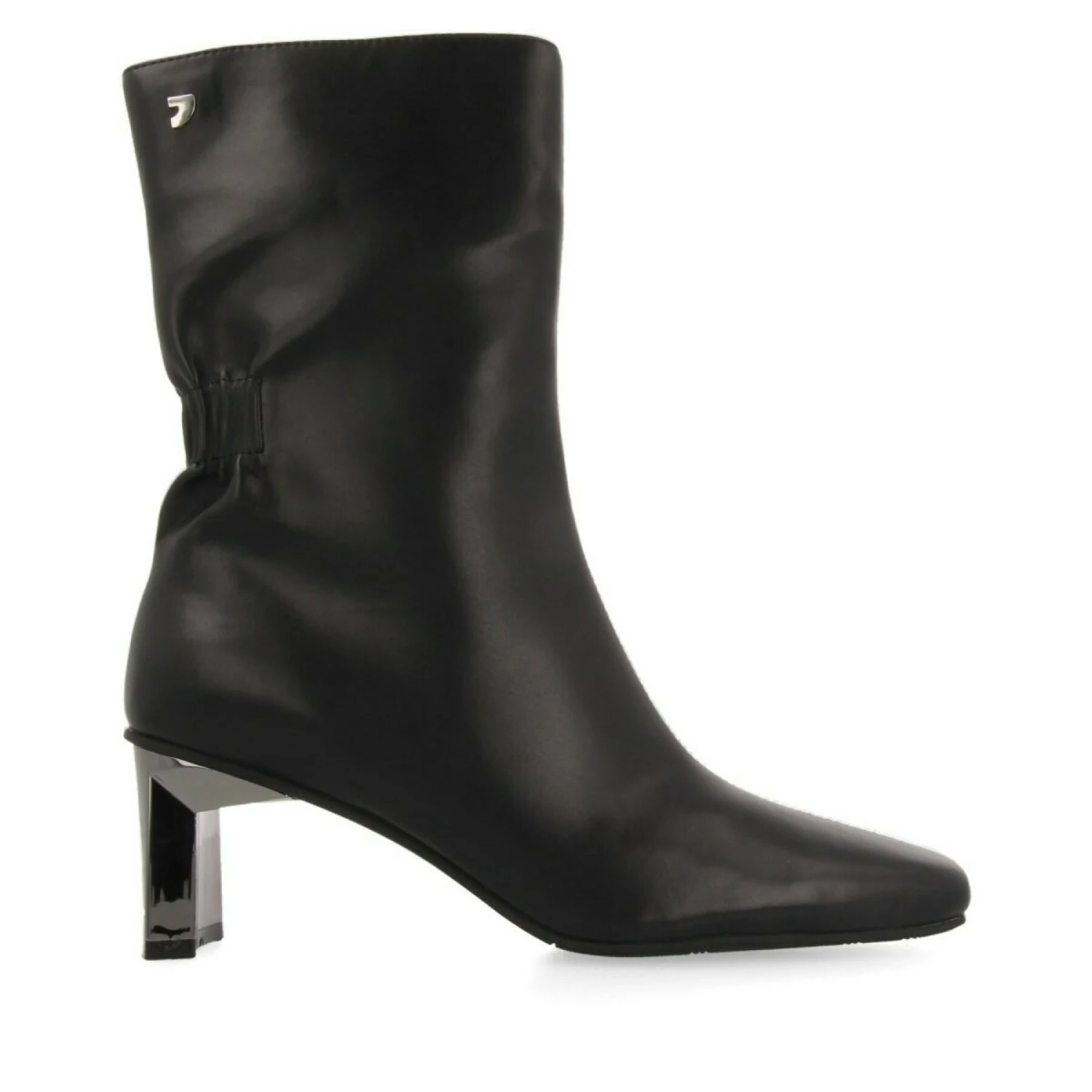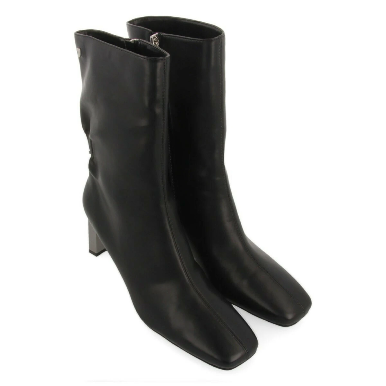 Zo stijlvol en comfortabel! Zwarte laarzen met schildpadhak. Leren binnenzool met latex vulling. Ademende voering. 20 cm been en 6 cm hak.