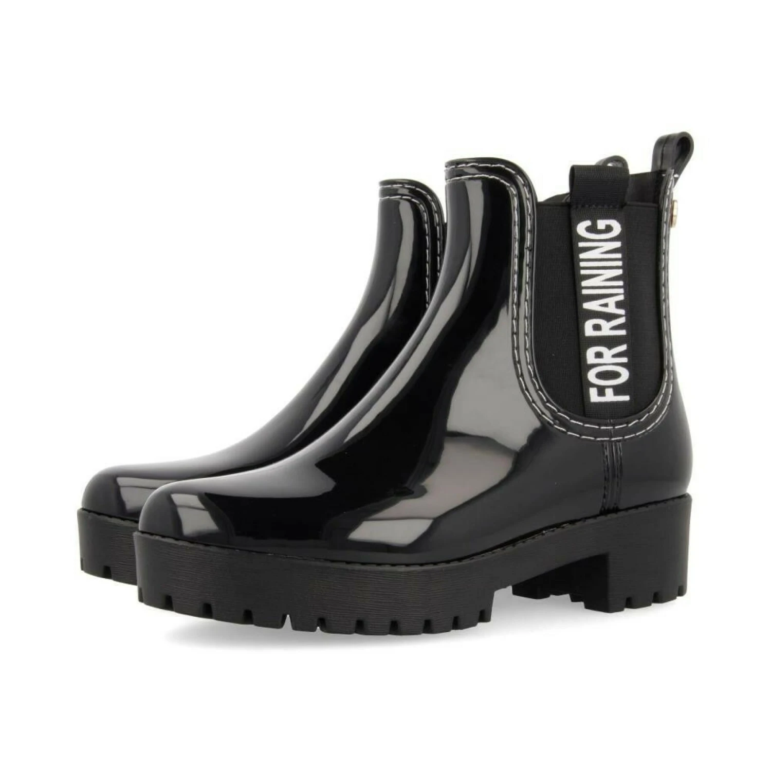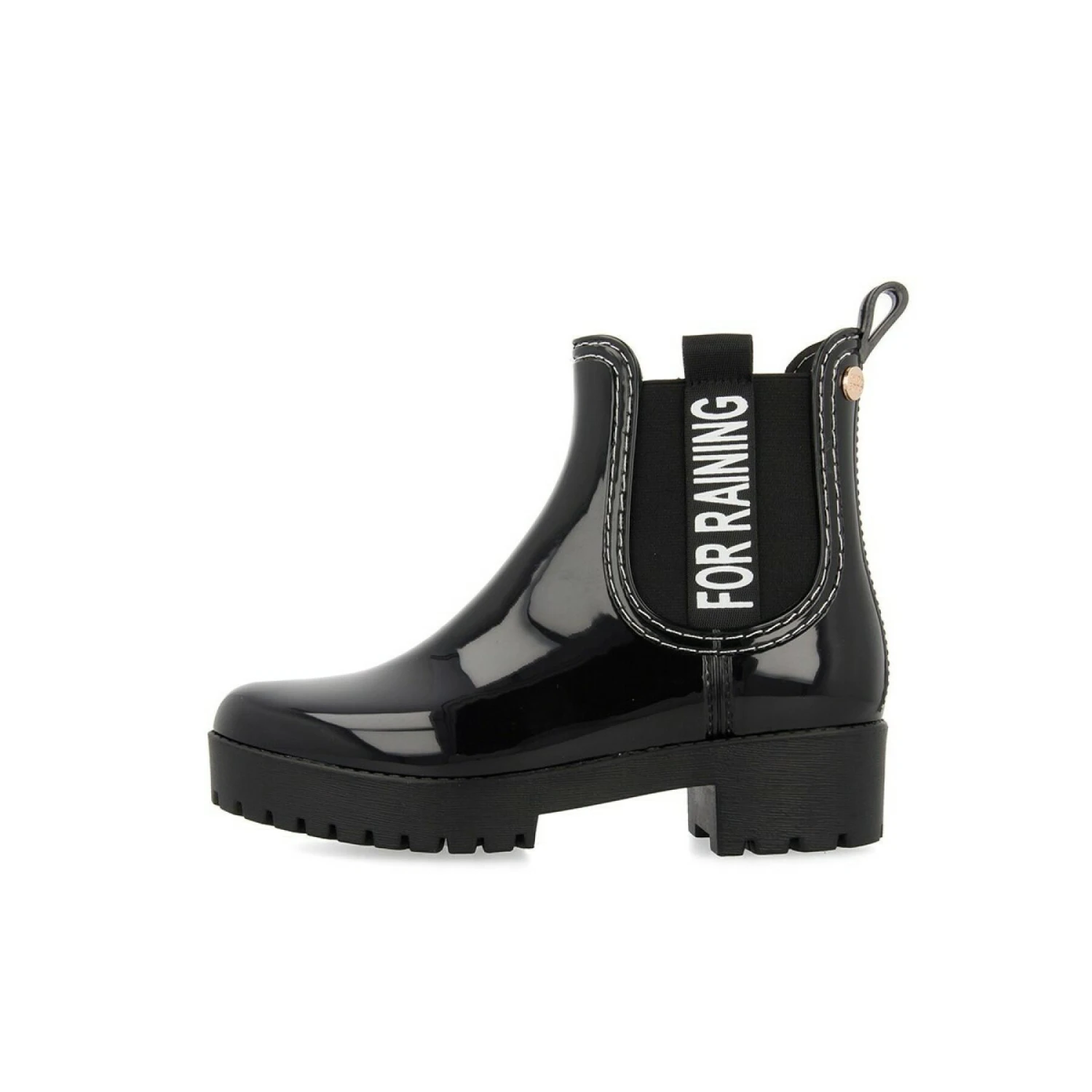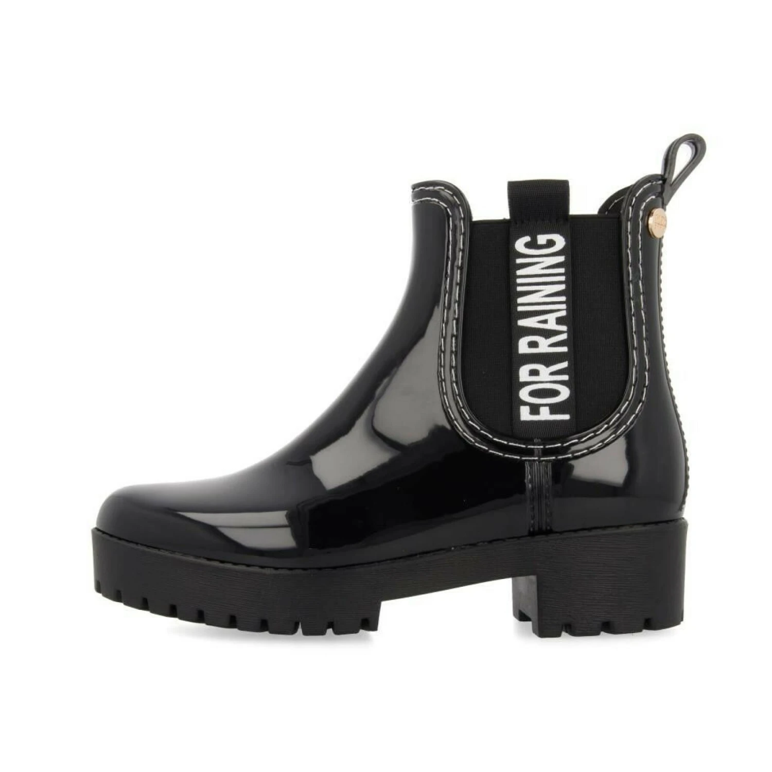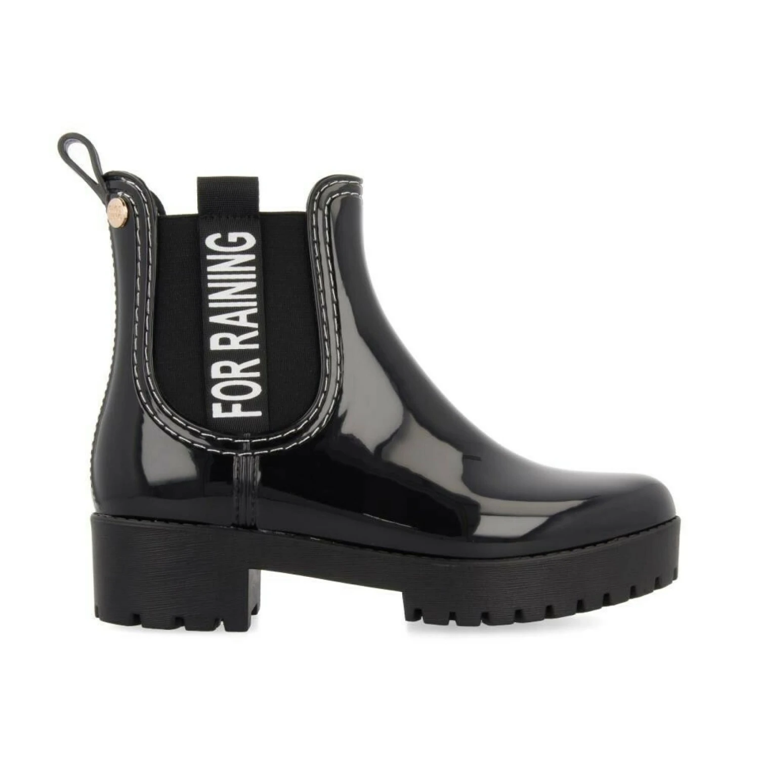 Zwarte regenlaarzen, Chelsea stijl. Elastische zijkanten met boodschap. Spoorzool. Laat de regen je goed staan met de nieuwste trend in enkellaarsjes.