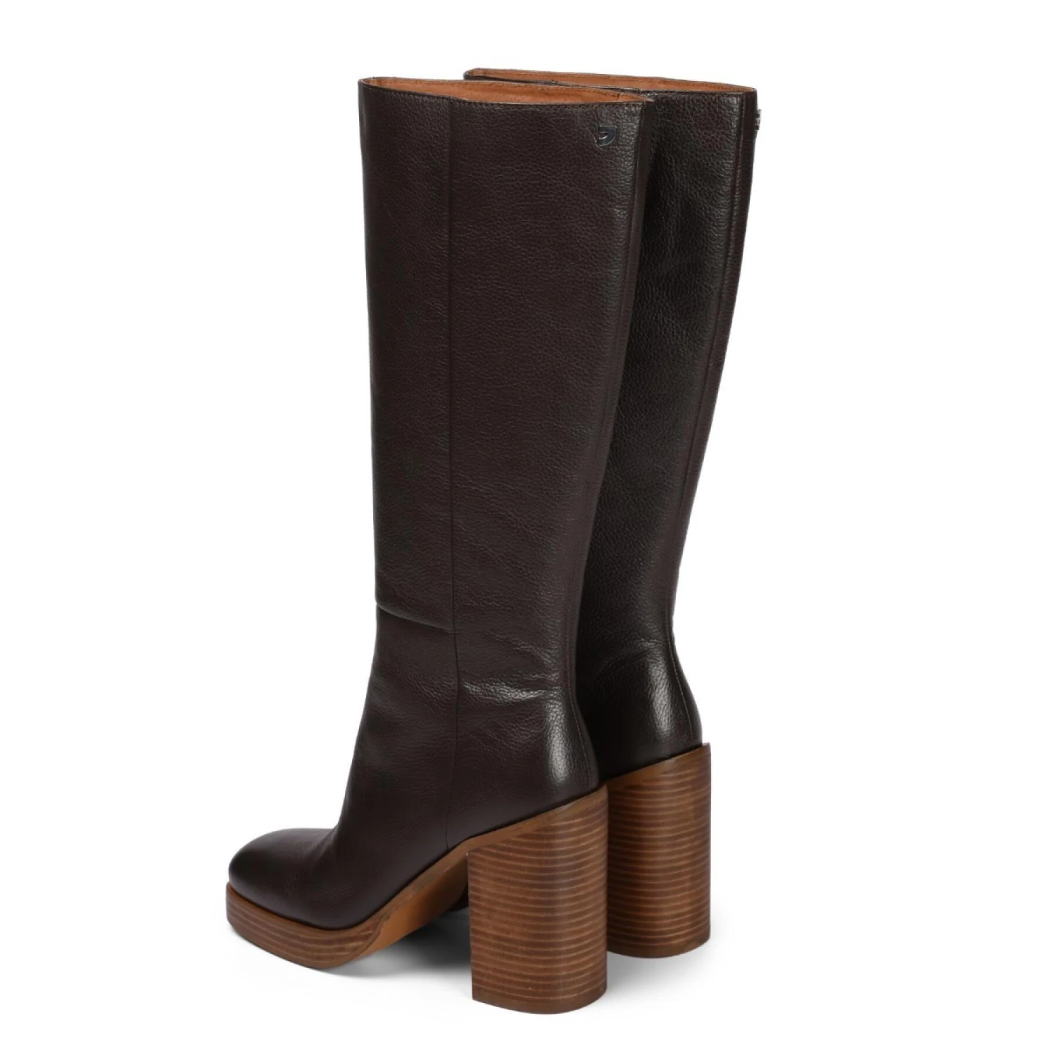 Ontdek de beste stijlen uit de herfst/wintercollectie 2023. Kniehoge, koffiekleurige leren laarzen met leren plateaus en brede hakken. Binnenzolen van natuurlijke vezels. Latex binnenzolen en gerecyclede voering. De voering en inlegzolen zijn gemaakt van leer dat is geproduceerd volgens een duurzamer looiprotocol, in overeenstemming met de normen van de Leather Working Group. Perfect voor elke outfit!