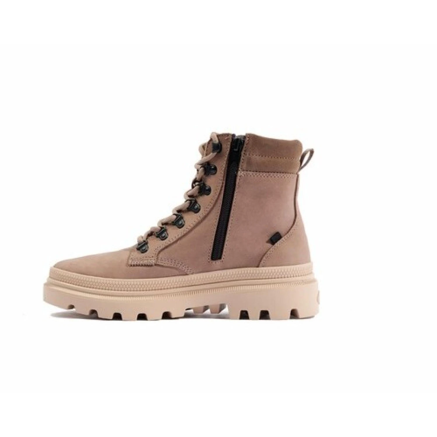 Deze vrouwelijke versie van onze op het leger geïnspireerde Pallatrooper-laars is een wandelmodel met een dikke Paradrop-middenzool en gewatteerde enkelkraag voor de hele dag comfort. Het hoge bovenwerk is gemaakt van eersteklas ethisch leer, met ons unieke logo in reliëf. Met Palladium’s iconische dikke zool, een ritssluiting aan de binnenkant en utilitaire ontwerpdetails is deze tijdloze geklede schoen echt het uniform van het volk.