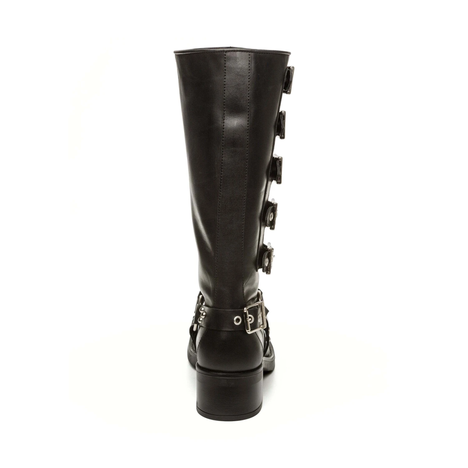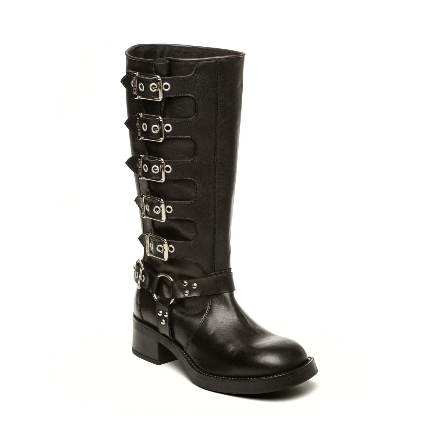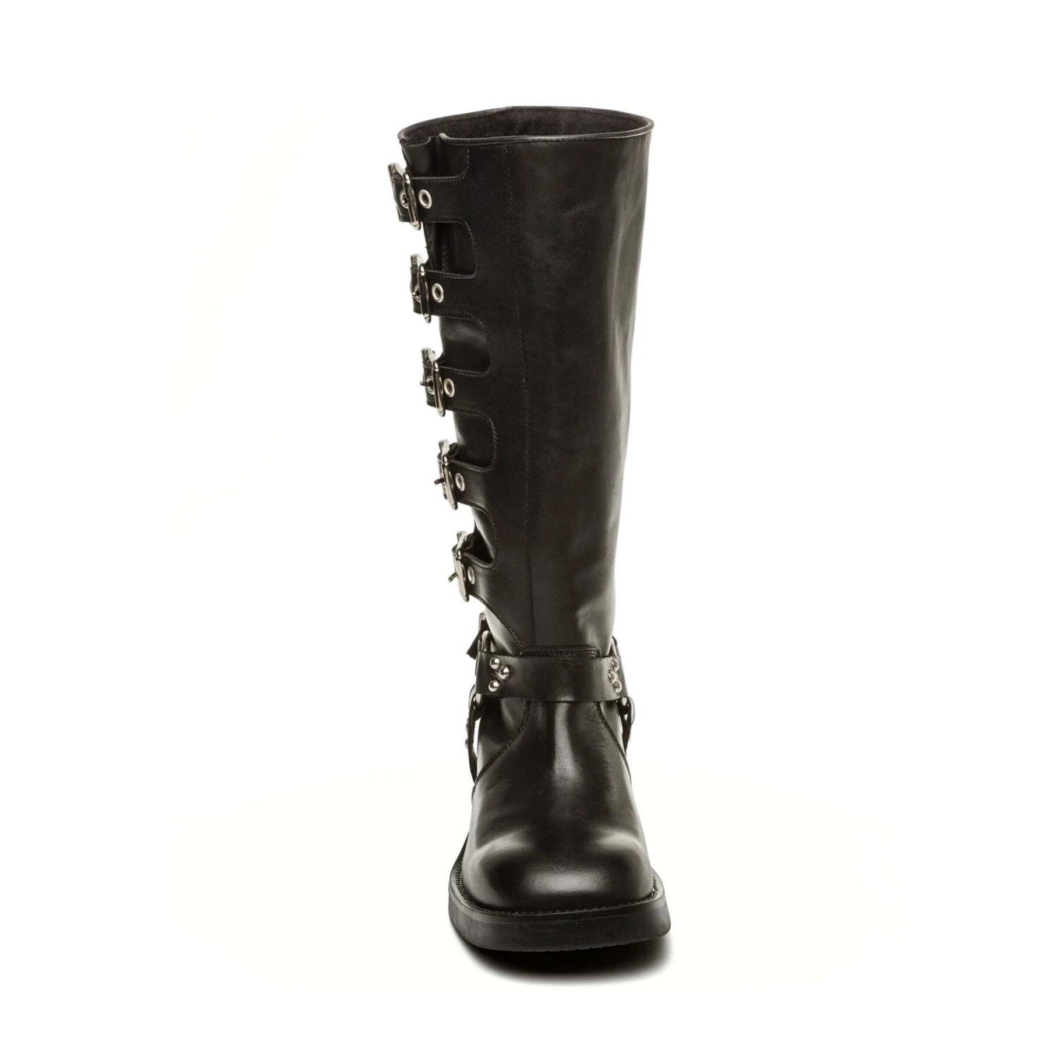 De BATTLE laars heeft het brede profiel van een ingenieurslaars met een harnas en veiligheidsriem. Gesp en hardware voegen een industrieel tintje toe en geven het model een verstelbare vorm.
