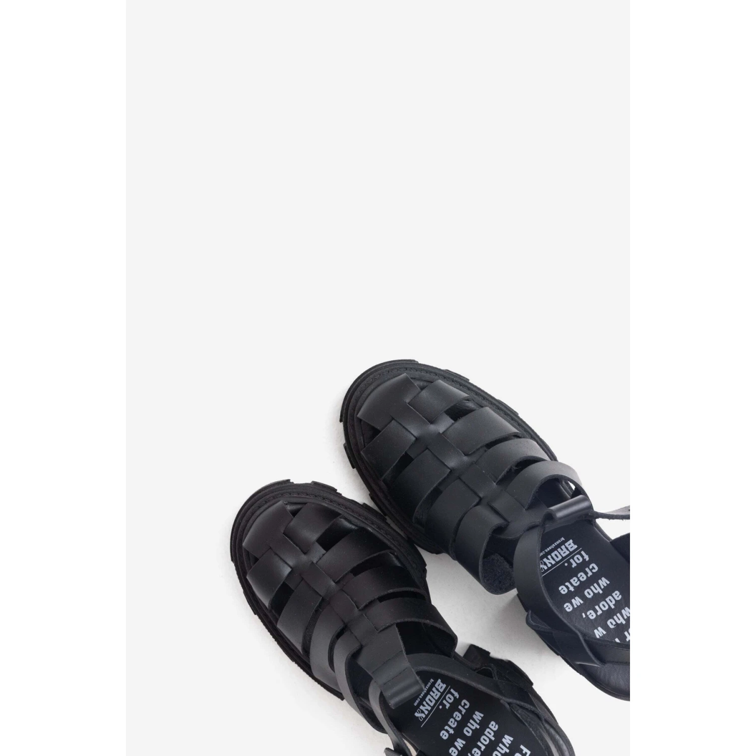 Deze handgemaakte sandaal is geïnspireerd op retro visserensandalen en maakt dit seizoen een comfortabel fashion statement! Dankzij het robuuste ontwerp van het bovenwerk zijn deze hakken bestand tegen elk terrein en blijven ze dag en nacht comfortabel. Uitgevoerd in ton-sur-ton zwart en verfrissend zilverkleurig metaal, zullen deze FURR-OW sandalen elke outfit naar een modieus niveau tillen.