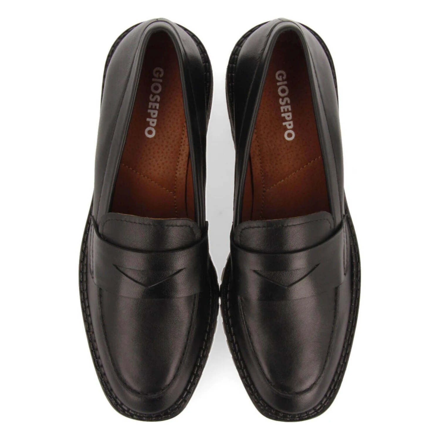 Adopteer ze nu! Zwart leren loafers met spoorzool. Uitsparing, zool en voering van leer dat is gelooid met een duurzamer looiproces dat voldoet aan de normen van Leather Working Group. Zool zwaar opgevuld met latex voor meer comfort. Flexibele zool. Mis de nieuwe FW23 collectie mocassins van Gioseppo Woman niet.
