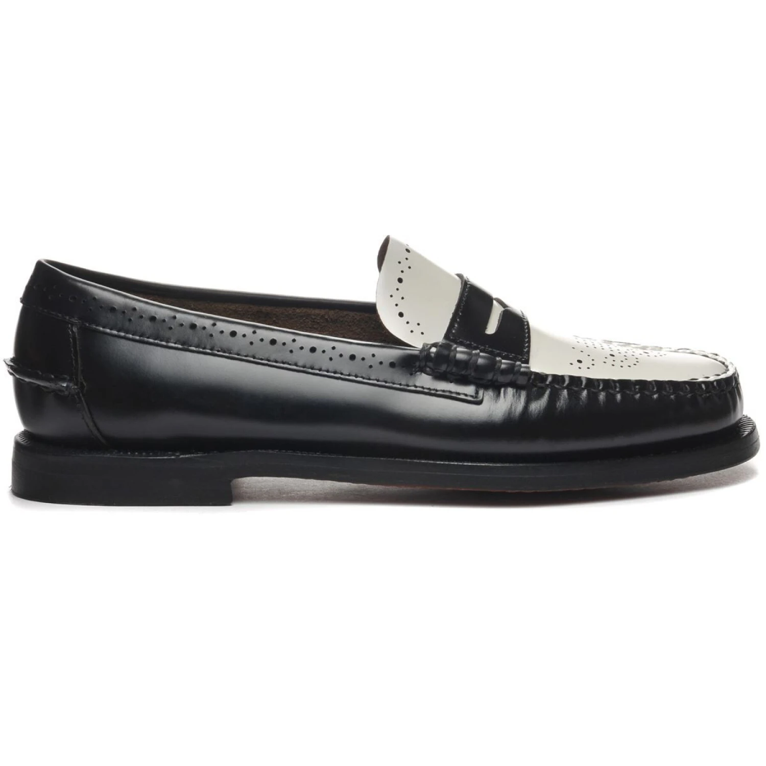 Sebago ’s knowhow ontwikkelt zich voortdurend om nieuwe hedendaagse eisen te interpreteren en modellen aan te bieden die kwaliteit, elegantie en dagelijks comfort combineren. Deze versie van de Dan loafer heeft een bovenwerk van hoogwaardig leer met klassieke brogue gaten en een met de hand gestikte plateau.