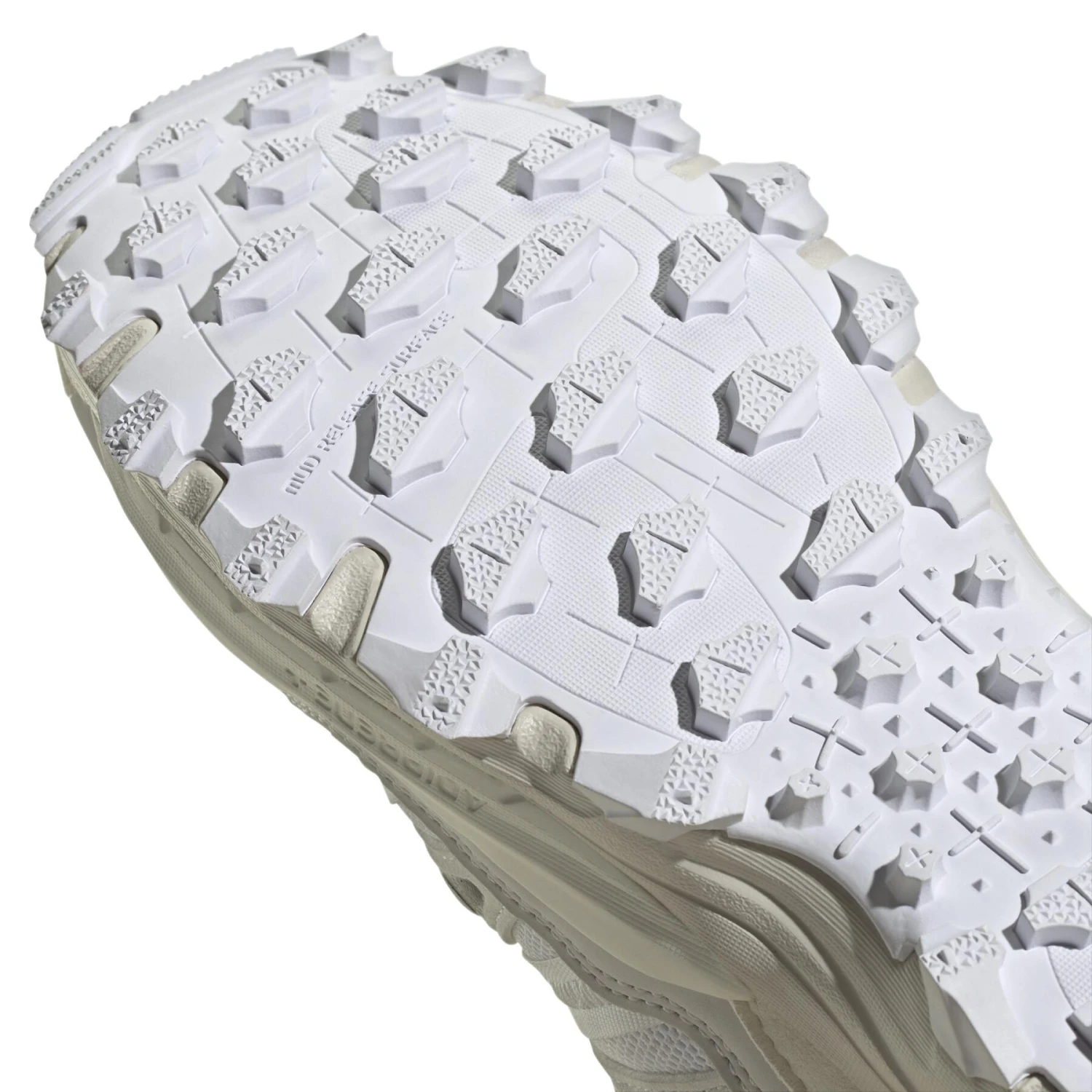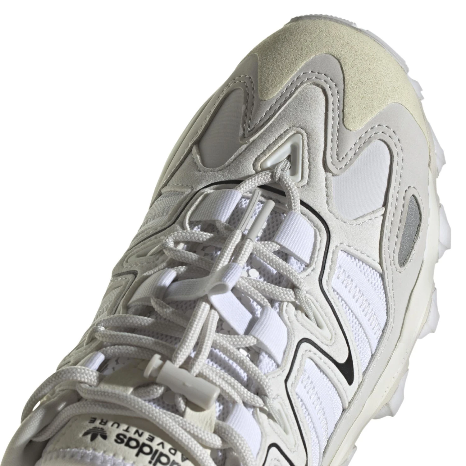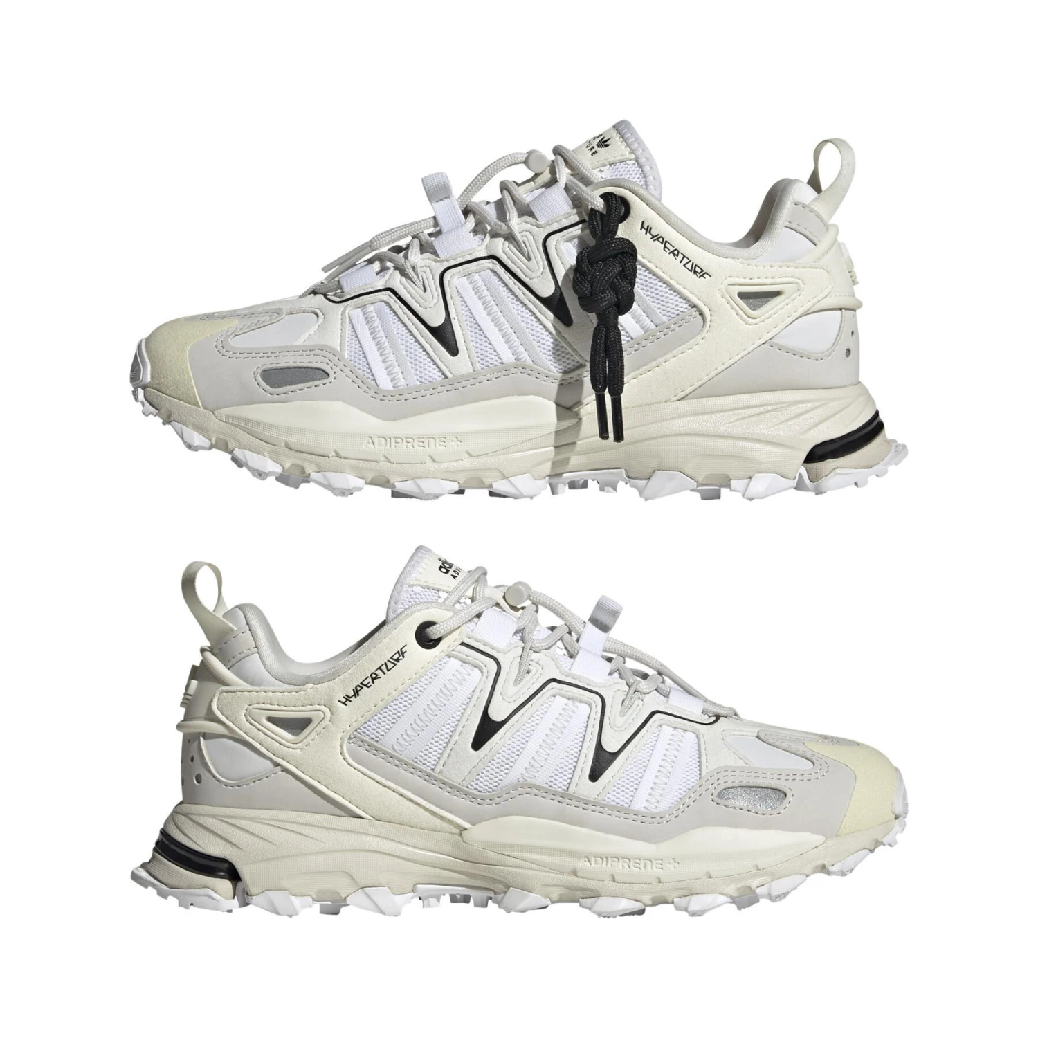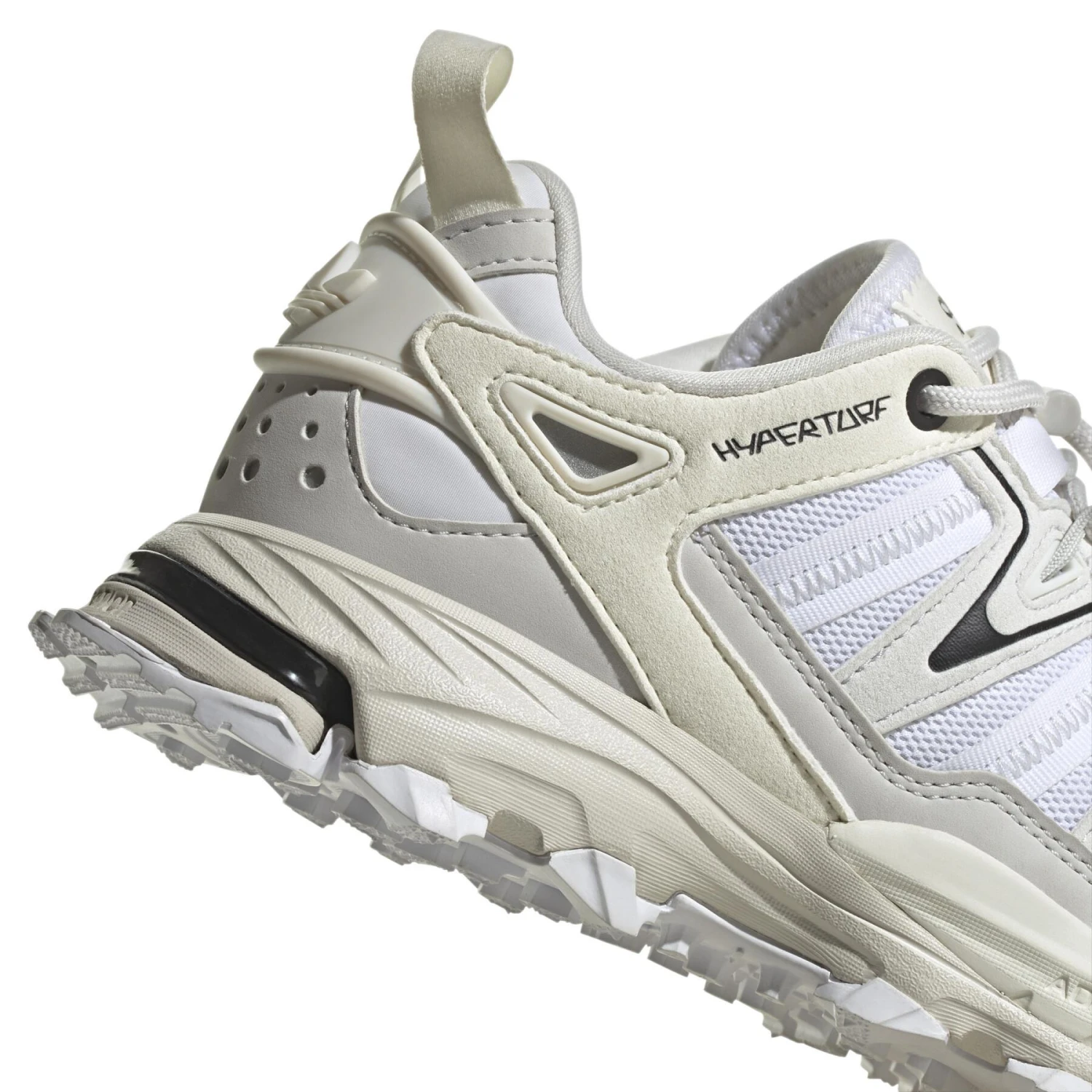 Ga het huis uit en ga op avontuur. Dat is waar het bij deze schoen van adidas Hyperturf om draait: haal het beste uit elke ervaring. De schoen heeft een ademend bovenwerk van mesh met inzetstukken van textiel en rubber en een veterontwerp met een gespikkeld effect. De handgemaakte esthetiek heeft op macramé geïnspireerde touwen en knopen.