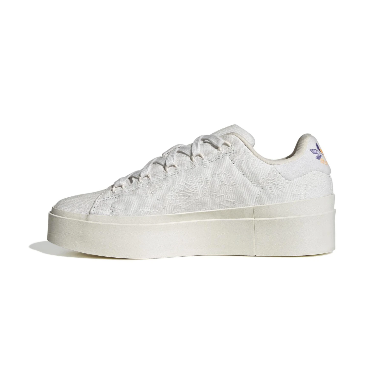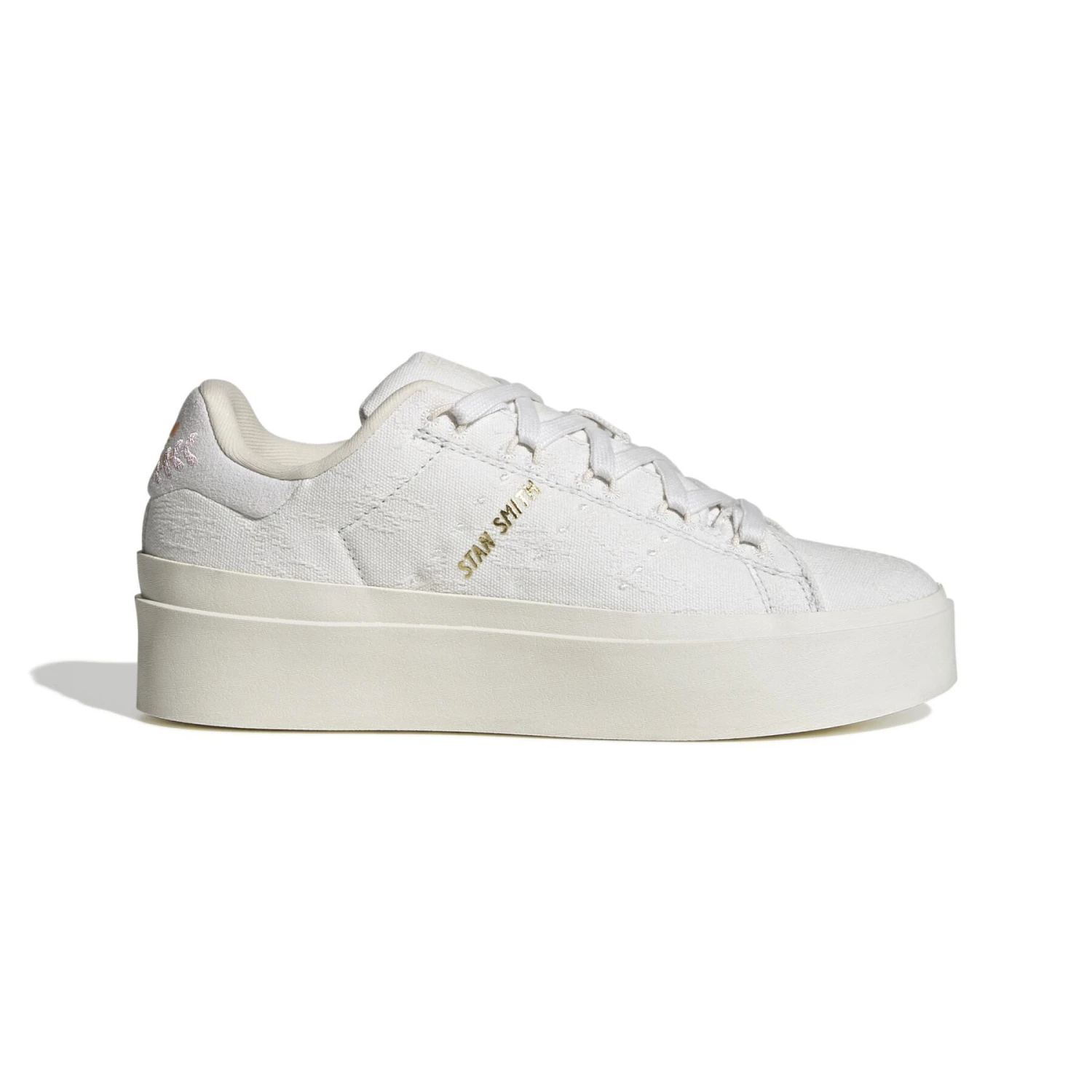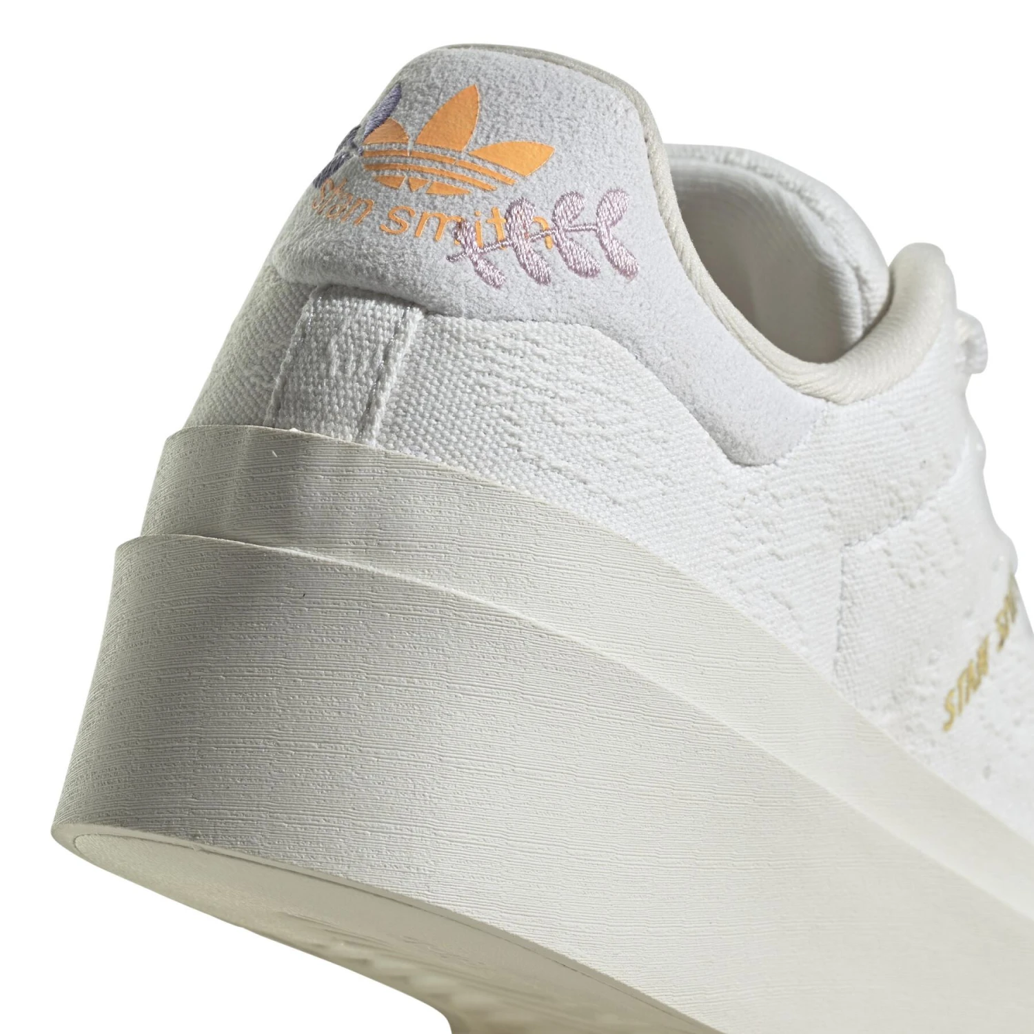 Minimalistisch van veraf, maar geraffineerd van dichtbij. Deze adidas Stan Smith sleehak heeft een nonchalante look look, met een gebroken wit bovenwerk en 3 klassieke geperforeerde strepen. Maar als je goed oplet, zie je ingewikkelde bloemendetails die een eerbetoon zijn aan de Plant Appreciation Month. De sleehakzool geeft je hoogte en het discrete gouden detail voegt een vleugje glitter toe aan je outfit. Het bovenwerk is gemaakt van 50% gerecycled materiaal minimum. Dit product is slechts een van onze oplossingen tegen plastic afval.