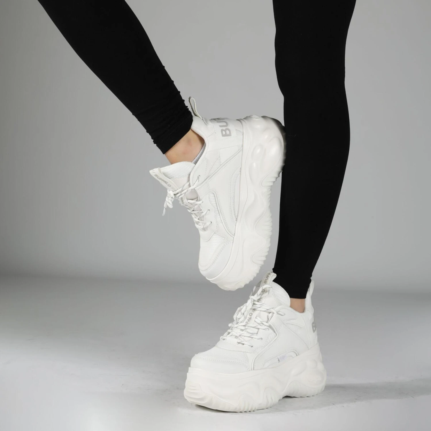 Onze nieuwe Blader Matcha Low sportschoenen zijn sportief en elegant en geïnspireerd op de retro-silhouetten van jogging schoenen. De ingetogen witte kleur is een elegante aanvulling op elke outfit. Dankzij de uitneembare traagschuim binnenzool en het ademende dempingssysteem is elke stap zo koel en licht als een veertje. De dikke rubberen zool maakt deze trendy veganistische sportschoenen tot een dynamisch, energiek accessoire.