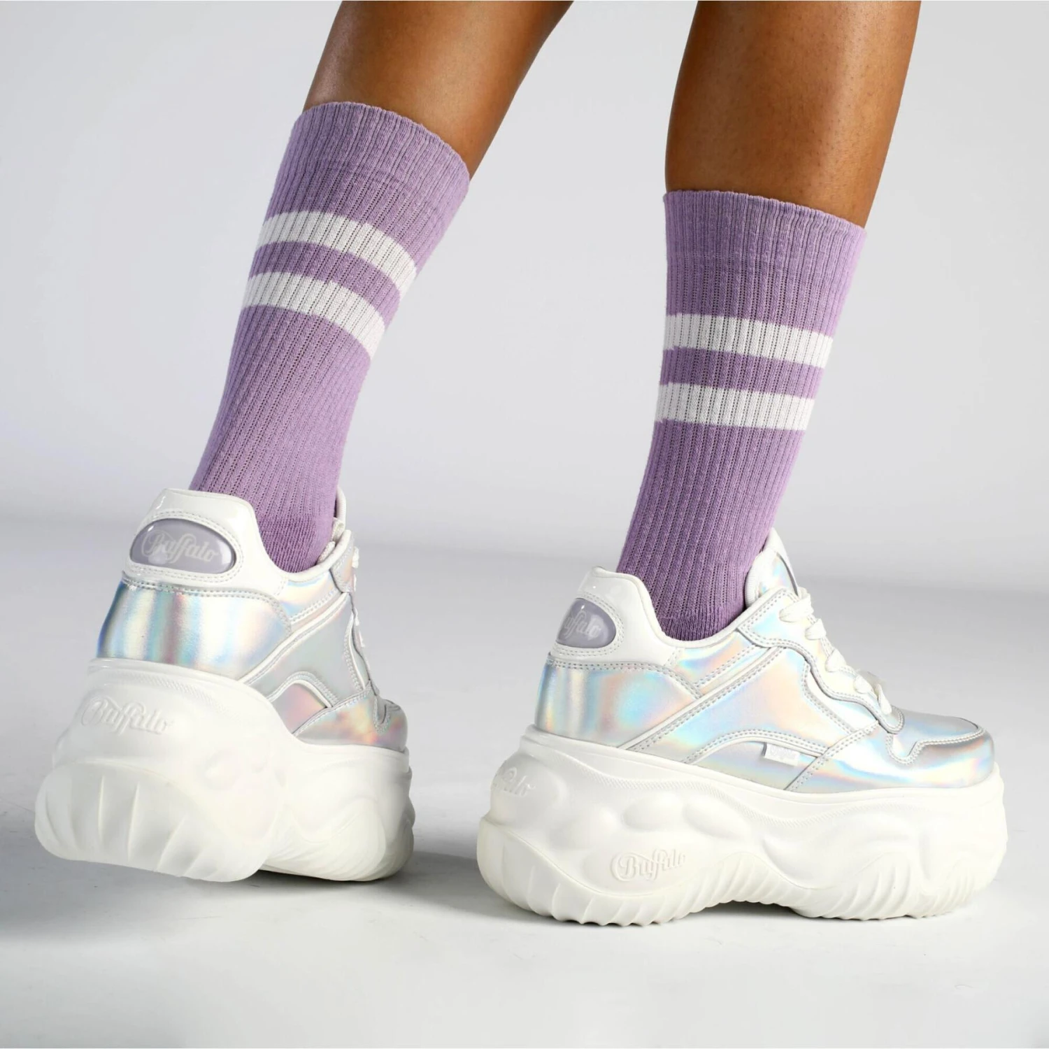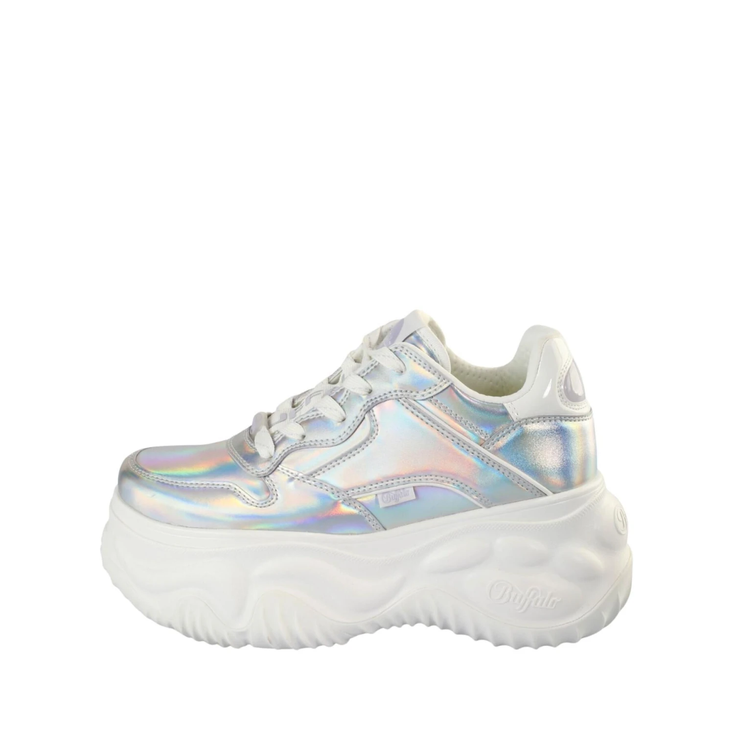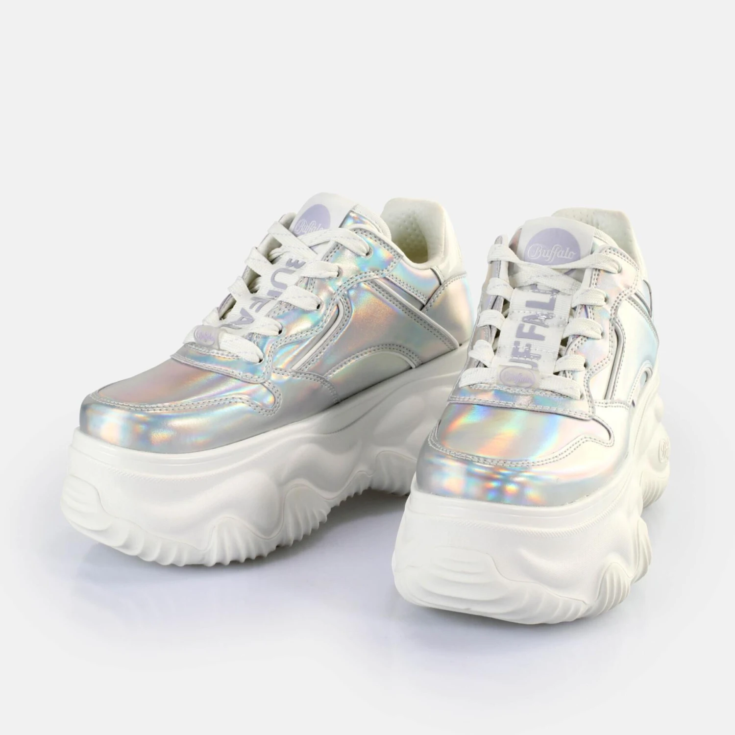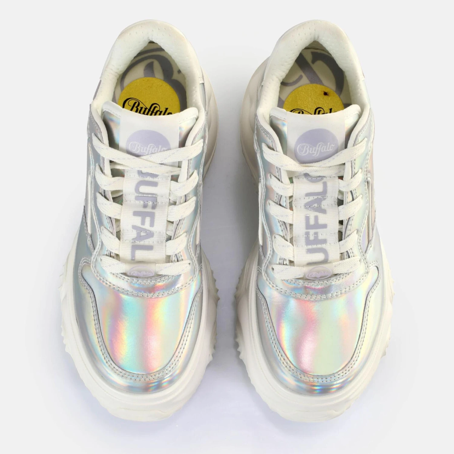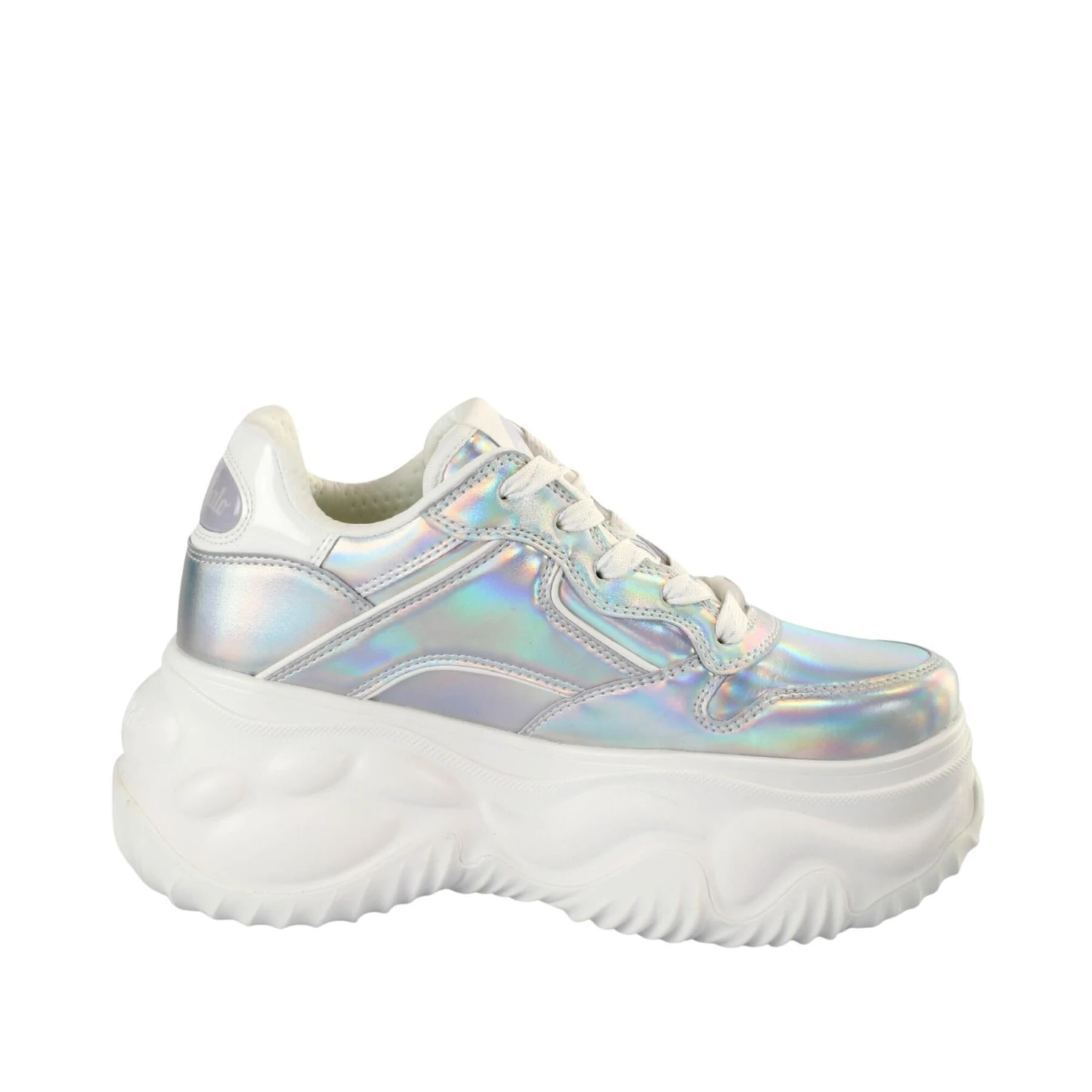 Ontdek een uniek model. De lage veganistische sportschoenen Blader One vallen op met hun onmiskenbare zilveren holografische patroon. De grove plateauzool ultra is helemaal in de mode. Laat je gevoel voor stijl zien met deze sneakers. Ze hebben ook een comfortabele uitneembare binnenzool van memory foam. Met dit glinsterende model kleed je elke outfit aan.