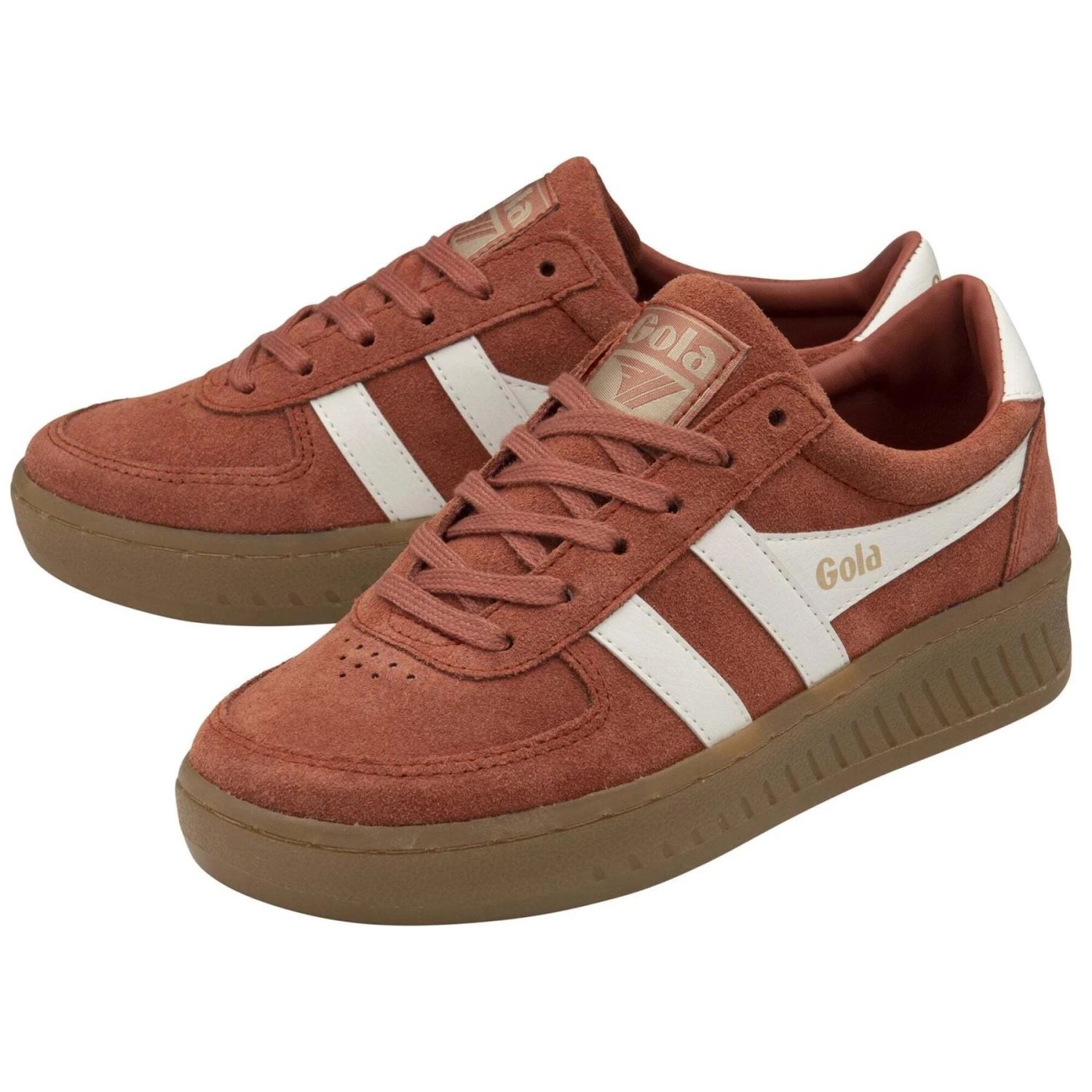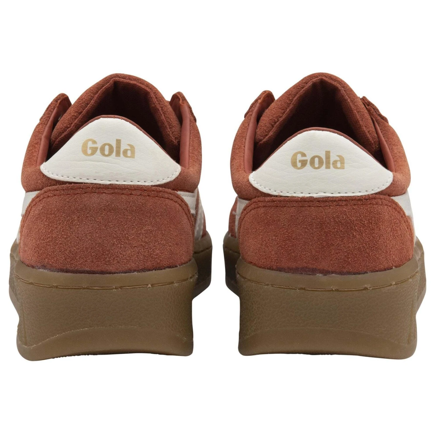De klassieke Grandslam van Gola komt dit seizoen in een verscheidenheid van suède opties in nieuwe kleurenmixen voor vrouwen, wat de natuurlijke evolutie van deze altijd populaire sneakerstijl laat zien. De Grandslam Suede spice orange/off white heeft een trendy spice orange suède bovenkant, gecombineerd met een side wingflash en hiel tab Gola off white, en afgewerkt met een gum zool. Een klassieke, op het erfgoed geïnspireerde damessneaker die perfect past bij een casual alledaagse stijl.
