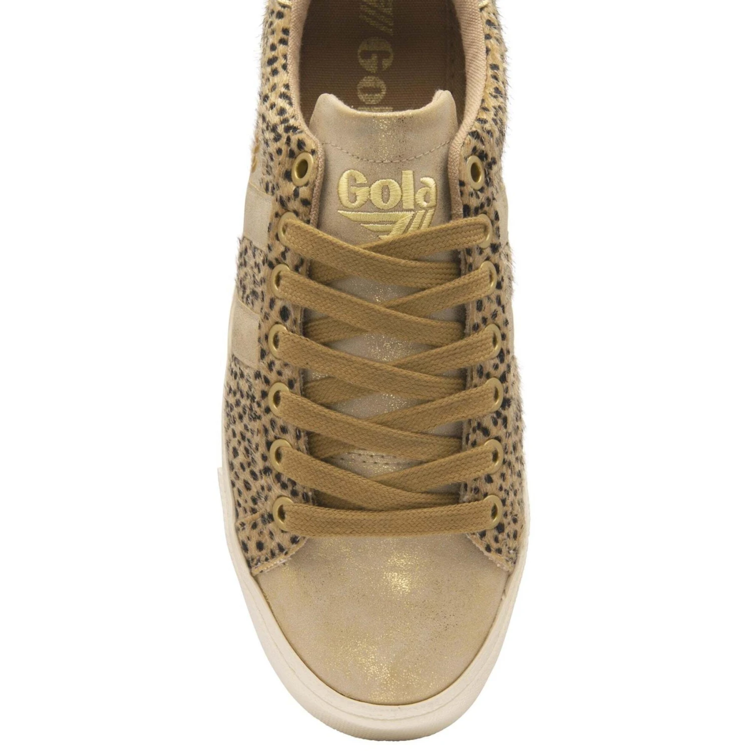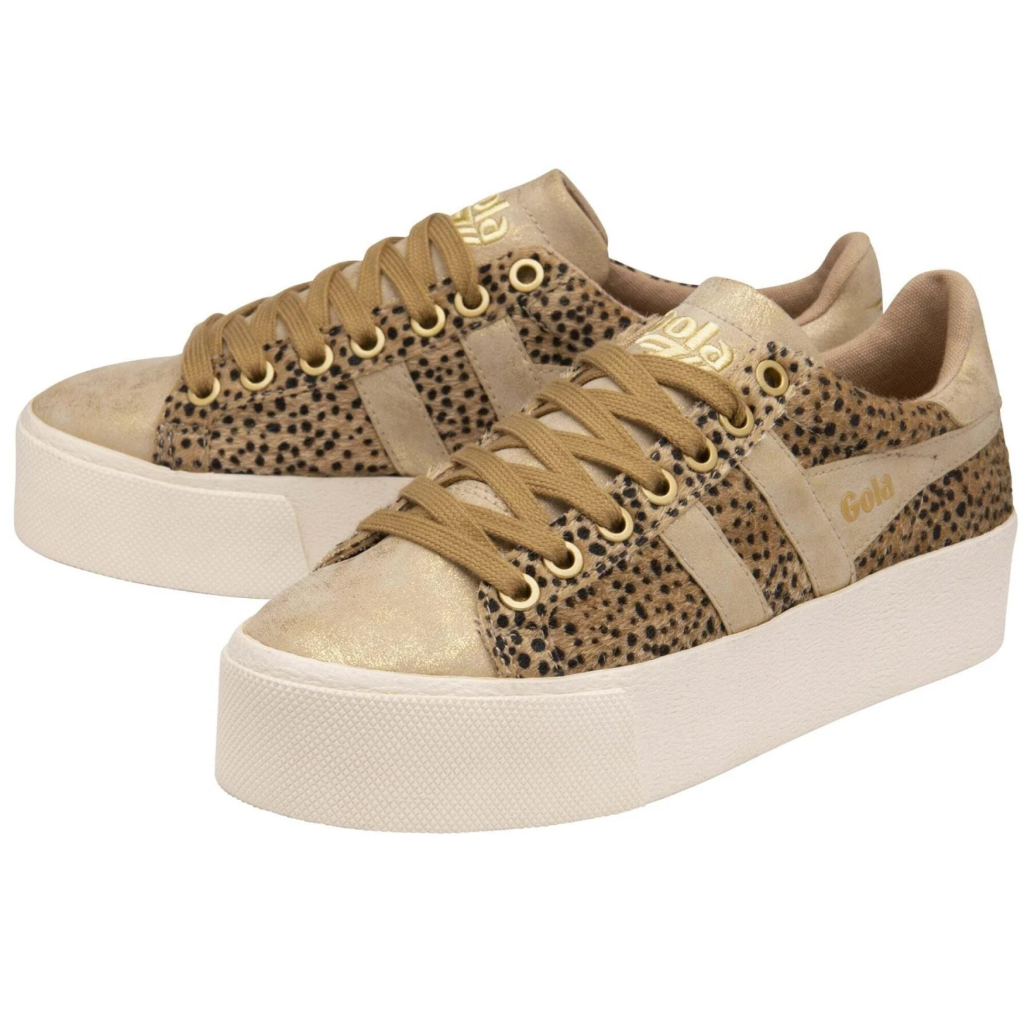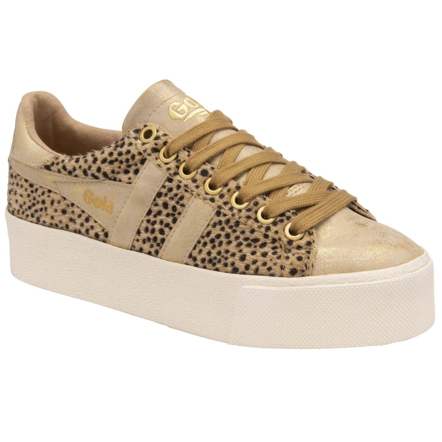 Dierenprint is de meest chique neutrale van het seizoen en er is geen betere trainersoptie om die look te geven dan de Orchid Platform Savanna trainers van Gola voor dames. De Orchid Platform Savanna combineert faux cheetah zij-inzetten met een gouden teen, tong en hiel en gouden merkopdrukken en heeft een chique uitstraling. Orchid Platform Savanna perfectioneert de platformtrainertrend voor vrouwen en is voorzien van een dikke, verhoogde off-white zool, waardoor het Gola Orchid trainersilhouet een frisse, runwayklare look krijgt.