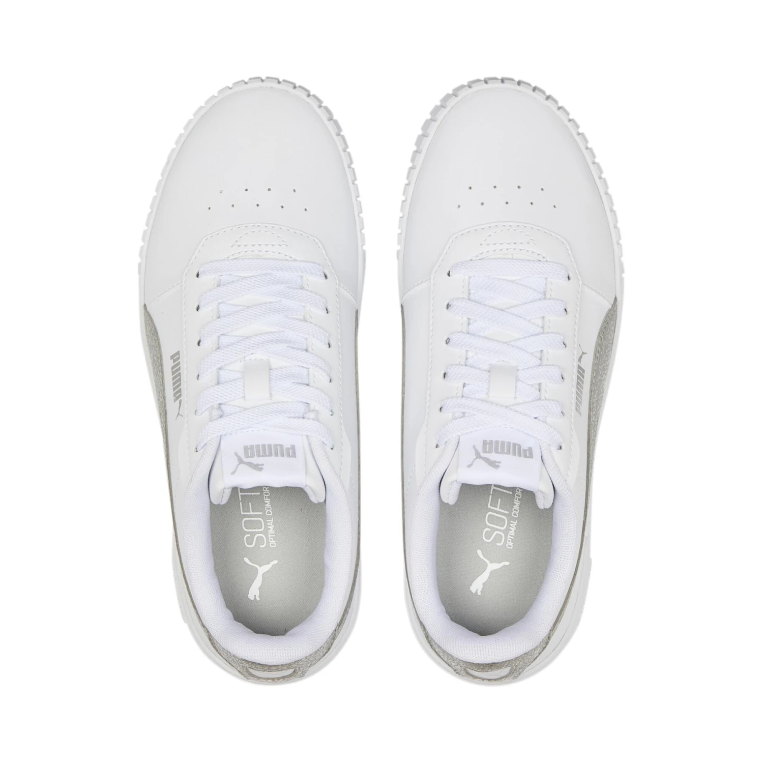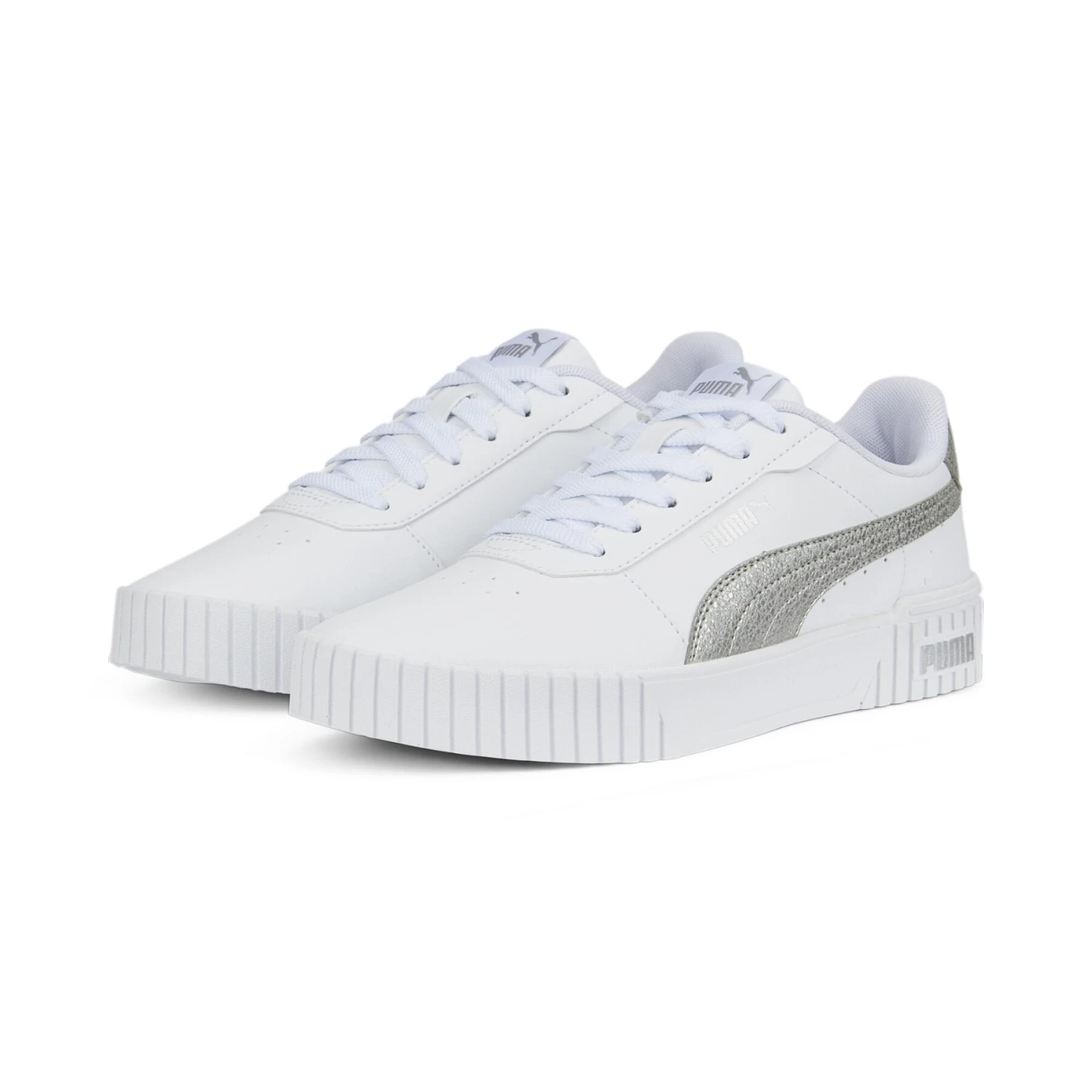 De Carina-collectie, gelanceerd in de jaren 80 en opnieuw geïnterpreteerd voor vandaag, belichaamt de ongedwongen Californische levensstijl. Strak en stijlvol met strakke lijnen, perfecte perforaties, moderne metallic details en een getextureerde overlay buitenzool, deze Distressed versie heeft een on-trend West Coast stijl. FUNCTIES + VOORDELEN SOFTFOAM+: Comfortabele inlegzool ontworpen voor een zachte demping met een ultradikke hielGerecycled materiaal: Het bovenwerk van deze schoen is gemaakt met minimaal 20% gerecycled materiaal, wat een stap is naar een betere toekomst DETAILS Bovenwerk van gerecycled leer met perforaties op de vampMetallic detailsWidere verticale lijnenLogo PUMA Nr. 1 op de tongBand PUMA Formstrip aan de binnen- en buitenzijde