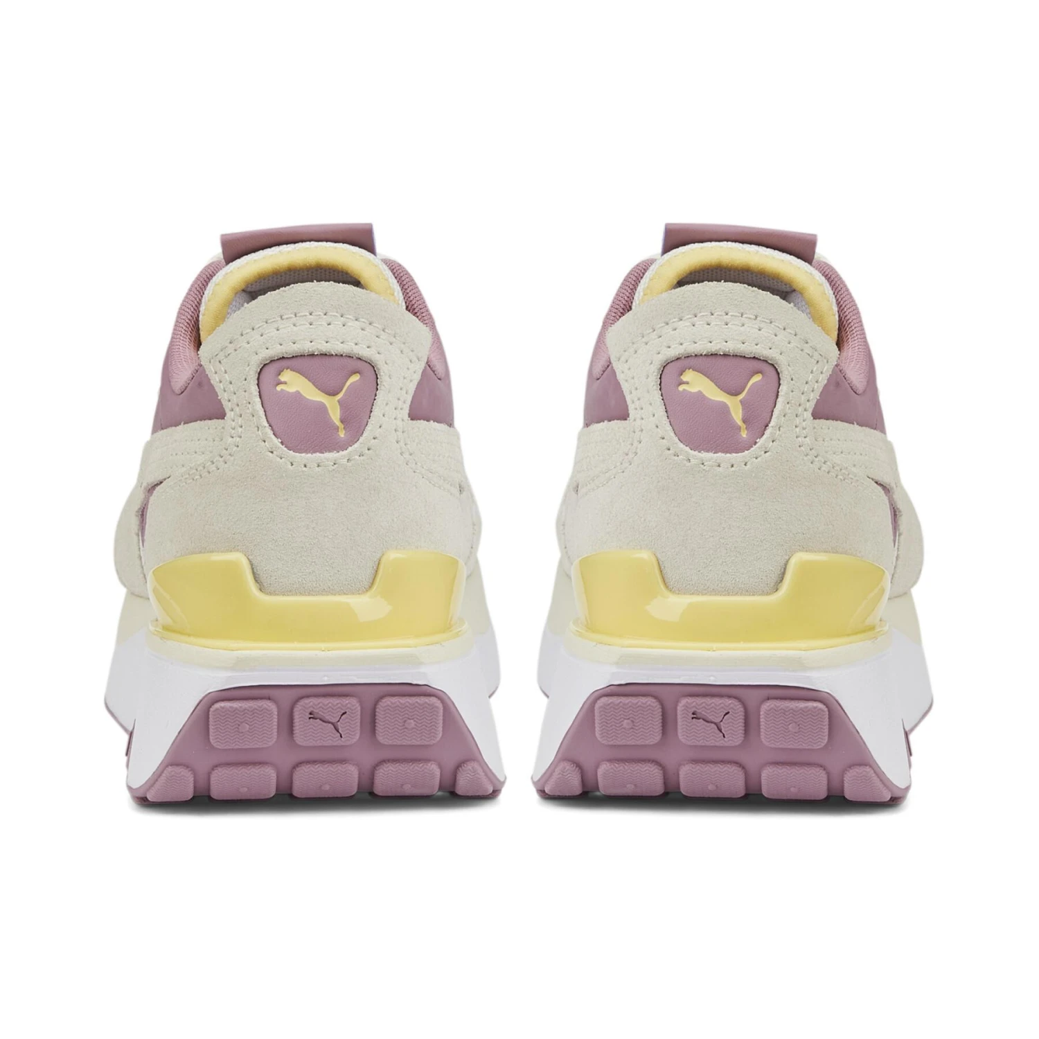 De Cruise Rider, geïnspireerd op vintage auto’s, heeft een speels ontwerp met een gestapelde buitenzool en TPU clip. Het bovenwerk van de schoen blijft trouw aan de Rider-familie en biedt de mogelijkheid van felle kleuren. Hij is klaar om de weg op te gaan en de wereld te verkennen. Dit pak heeft een basis van mesh met overlays van suède en synthetisch leer.