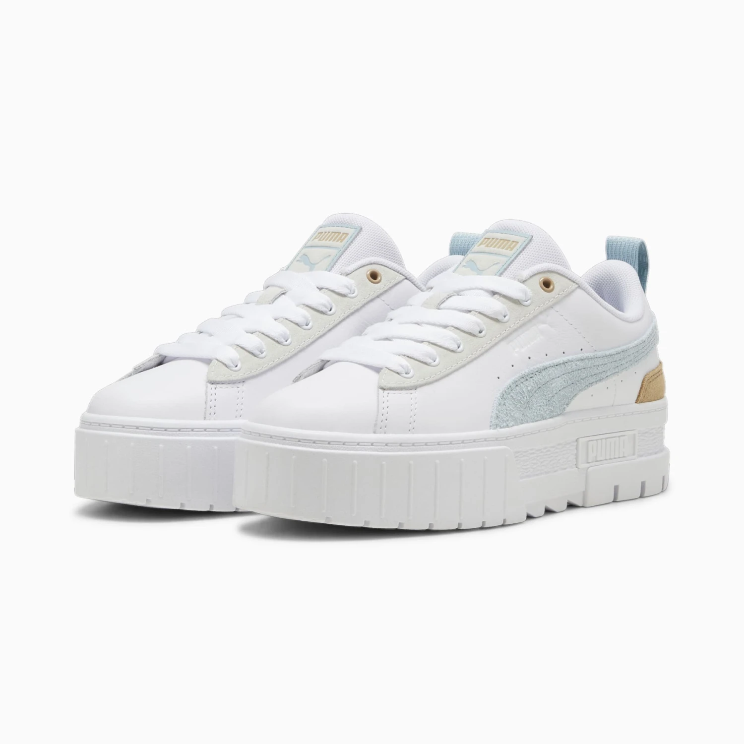 De Mayze is ontworpen voor wie van mode houdt, wie trends zet. Dit opvallende model heeft een verhoogde zool voor een trendy look look, ongeacht de outfit. Een klassieke kleur wordt gecombineerd met contrast op de PUMA Formstrip en hiel. Wat wil je nog meer?