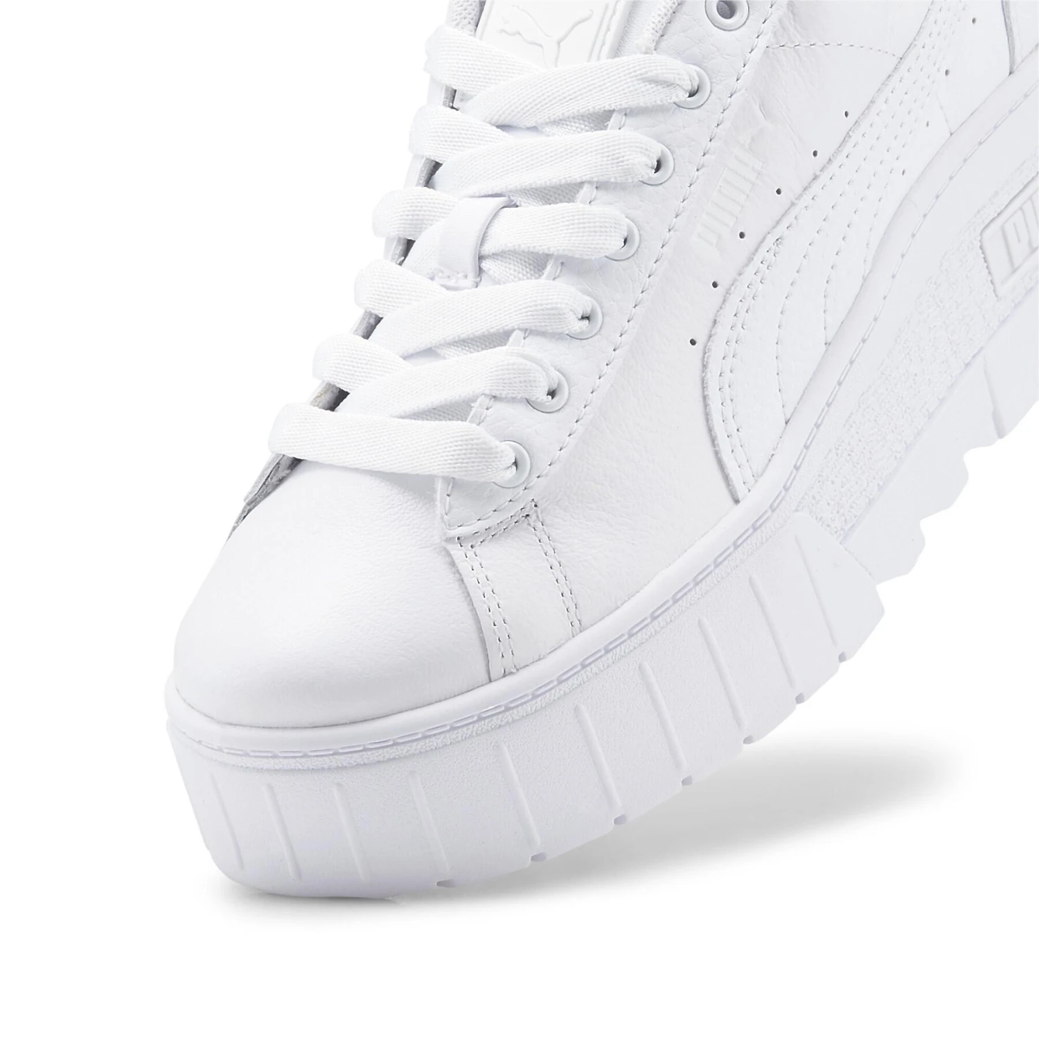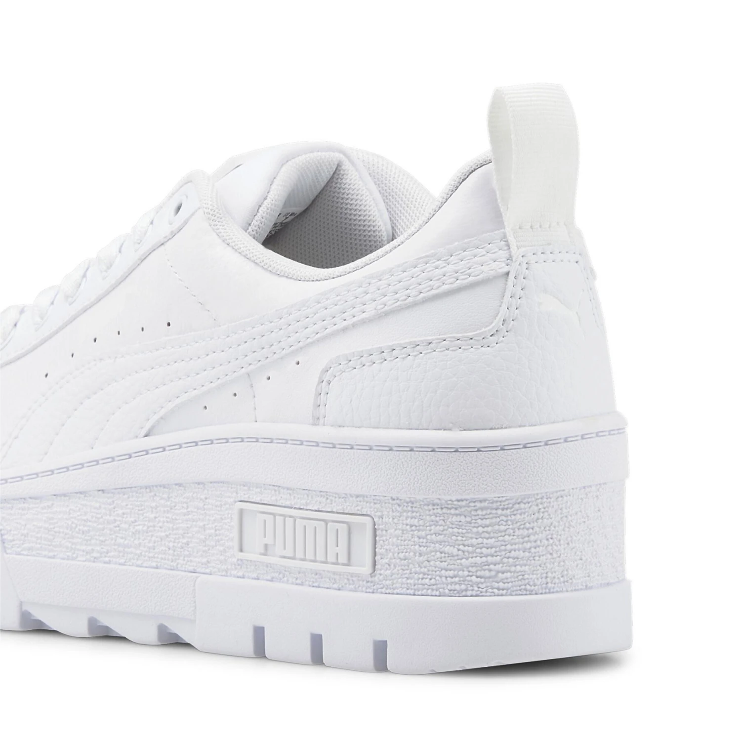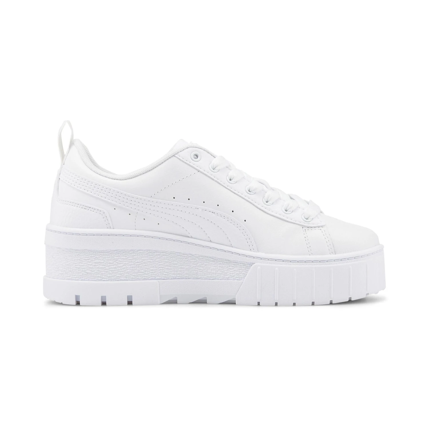 PRODUCT GESCHIEDENIS Neem de Mayze, geef het meer stijl, en je krijgt de Mayze Wedge. Het behoudt hetzelfde klassieke profiel met een opvallende plateauzool. Hoe je het ook draagt, het zal het uiterlijk van elke outfit verbeteren. DETAILS Leren bovenwerkIMEV tussenzoolRubberen buitenzool PUMA Formstrip aan binnen- en buitenzijdeLogo PUMA Kat op de hiel