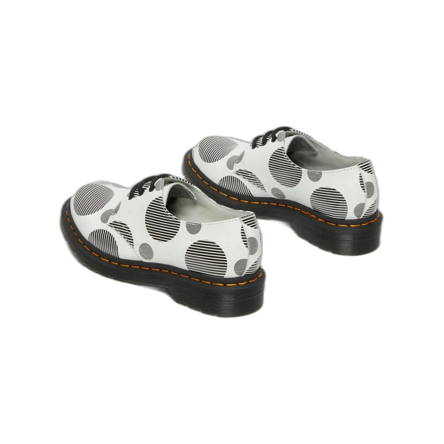 Nieuw dit seizoen, de high-impact print is een mix van stippen en strepen – een knipoog naar onze iconische gegroefde zool. De schoenen staan op een Smoke DMS-zool, zijn volledig bedrukt met stippen en gemarkeerd met onze iconische gele paspelnaden. De 1461, het tweede model in de DM-productielijn, is een schoen met drie oogjes die bekend staat om zijn veelzijdigheid. Robuust en bekend om zijn duurzaamheid, kan ons gladde leer worden gepolijst of geschuurd. De keuze is aan u. Reinigen met een vochtige doek en onderhouden met Dr. Martens schoenpoets.