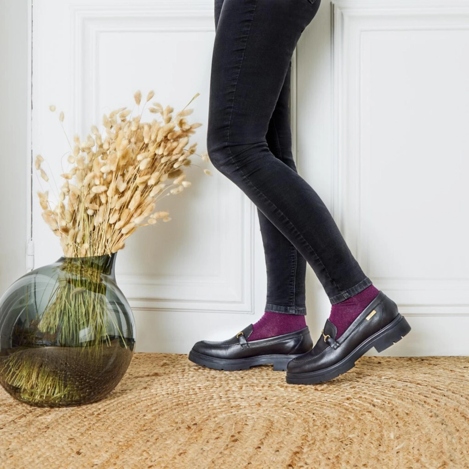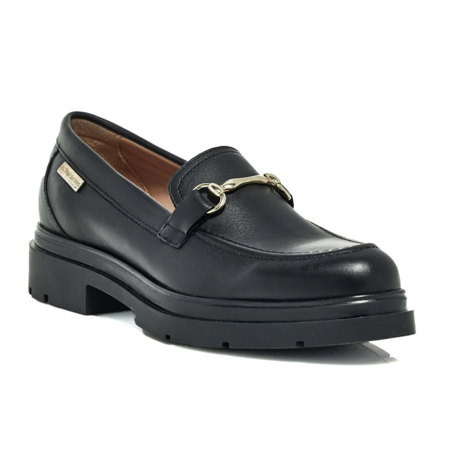Mocassins SLOANA van generfd leer, versierd met een gouden ruiterbit op de tong.