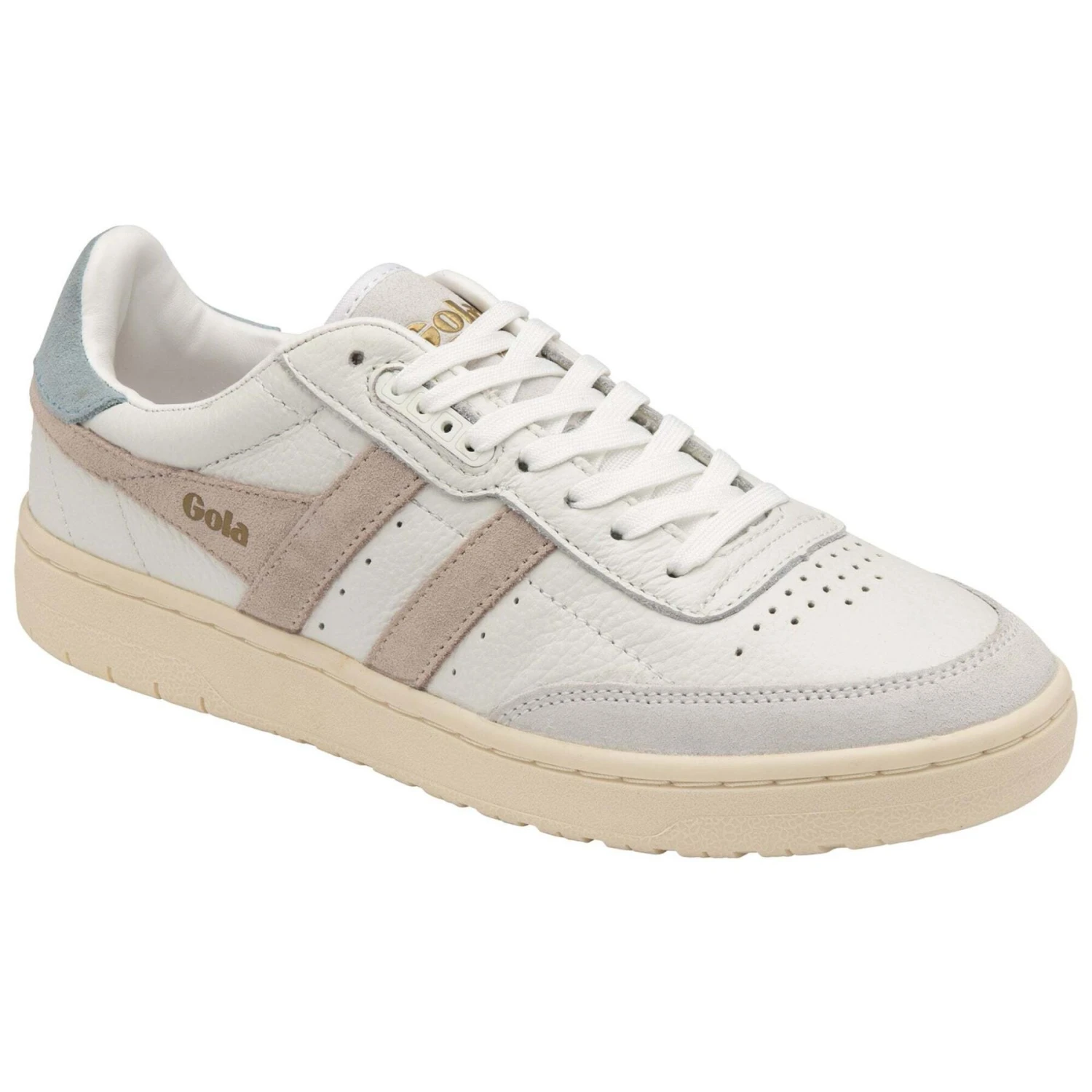 De Falcon damessneaker Golapour, die zowel bij casual looks als bij een getailleerde broek past, heeft zonder twijfel zijn wortels in de sport uit de jaren 80. Deze tijdloze chique interpretatie van een klassieke sportschoen met een gewelfde zool is fris en verleidelijk en verkent een vrouwelijk kleurenpalet met zachte accenten van lichtgrijs en lavendel op een fris wit leren bovenwerk.